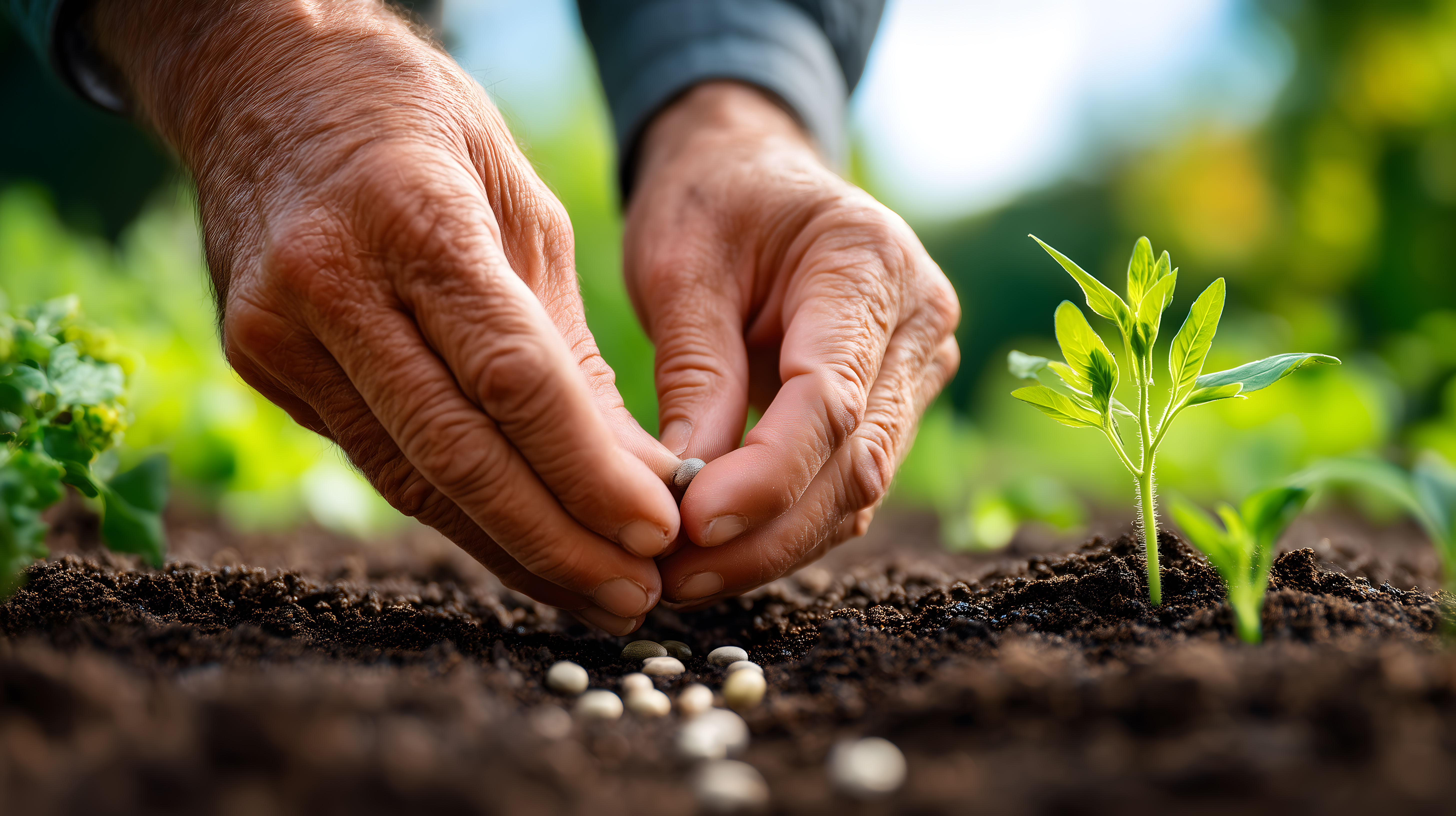 Dieses Bild zeigt die Nahaufnahme von Händen, die Samen in fruchtbare Erde säen. Die Perspektive konzentriert sich auf die detaillierten Bewegungen der Hände, die vorsichtig die Samen in den Boden einbringen. Im Hintergrund ist eine natürliche, grüne Umgebung zu sehen, was dem Bild eine friedliche und hoffnungsvolle Stimmung verleiht. Dieses hochauflösende Stockfoto eignet sich hervorragend für den Einsatz in Blogbeiträgen, Newslettern, auf Social-Media-Kanälen oder in Werbekampagnen rund um Themen wie Gärtnerei, Nachhaltigkeit, Ökologie und gesunde Ernährung. Es steht unter der Creative-Commons-Lizenz zur kostenlosen Verwendung zur Verfügung.