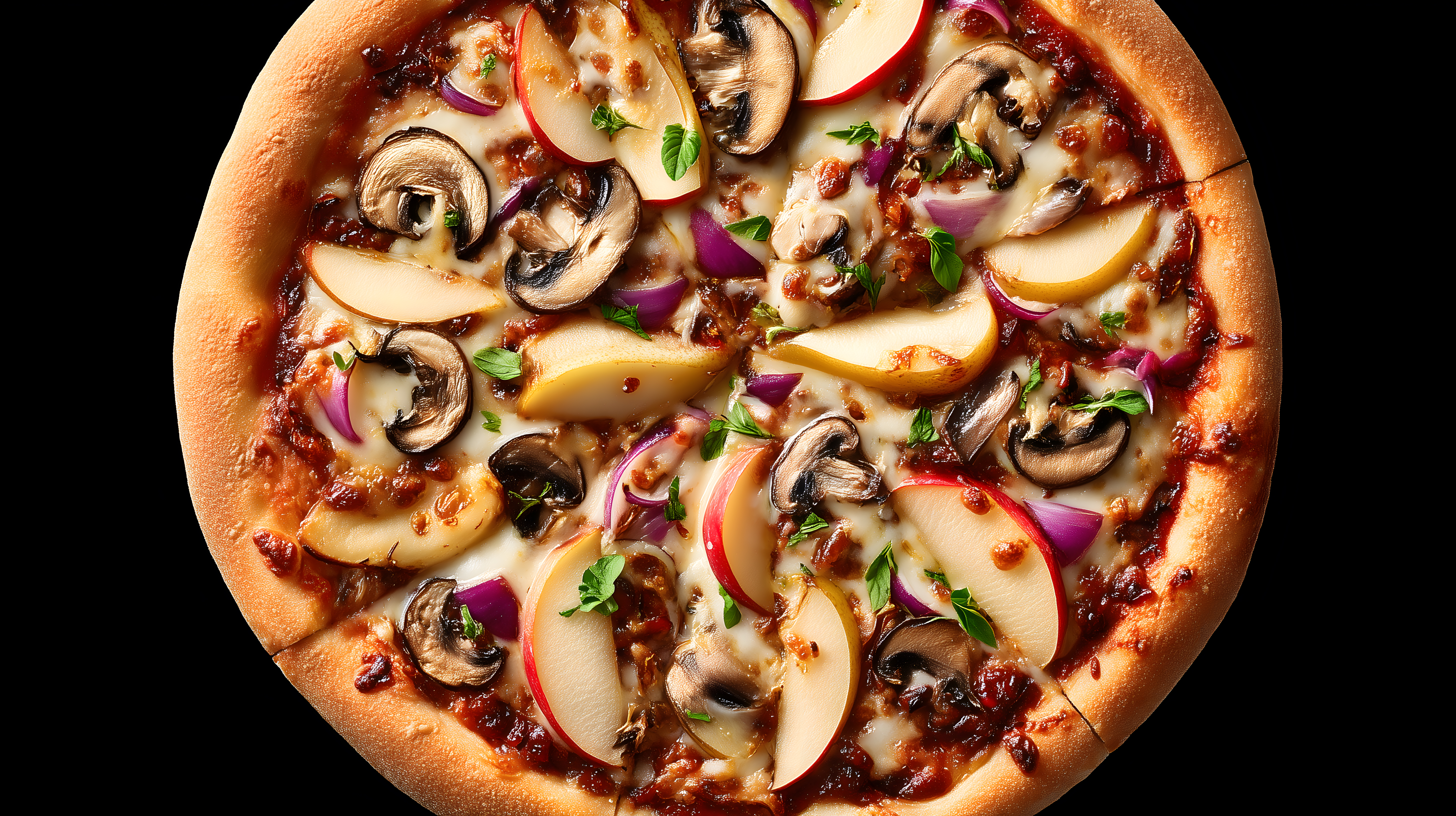 Dieses Foto zeigt eine köstliche vegetarische Pizza, belegt mit saftigen Birnenstücken, cremigen Pilzen, knackigen Zwiebeln und würzigem Käse. Die Pizza wurde in einer Vogelperspektive aufgenommen, sodass alle Zutaten klar zu erkennen sind. Das Foto eignet sich hervorragend für Rezeptbeiträge, Foodblogs oder Werbung für Pizzerien und Restaurants. Mit seiner appetitlichen Optik und den natürlichen Farben ist es ein kostenloses Stockfoto in hoher Auflösung, das unter der Creative-Commons-Lizenz genutzt werden kann.