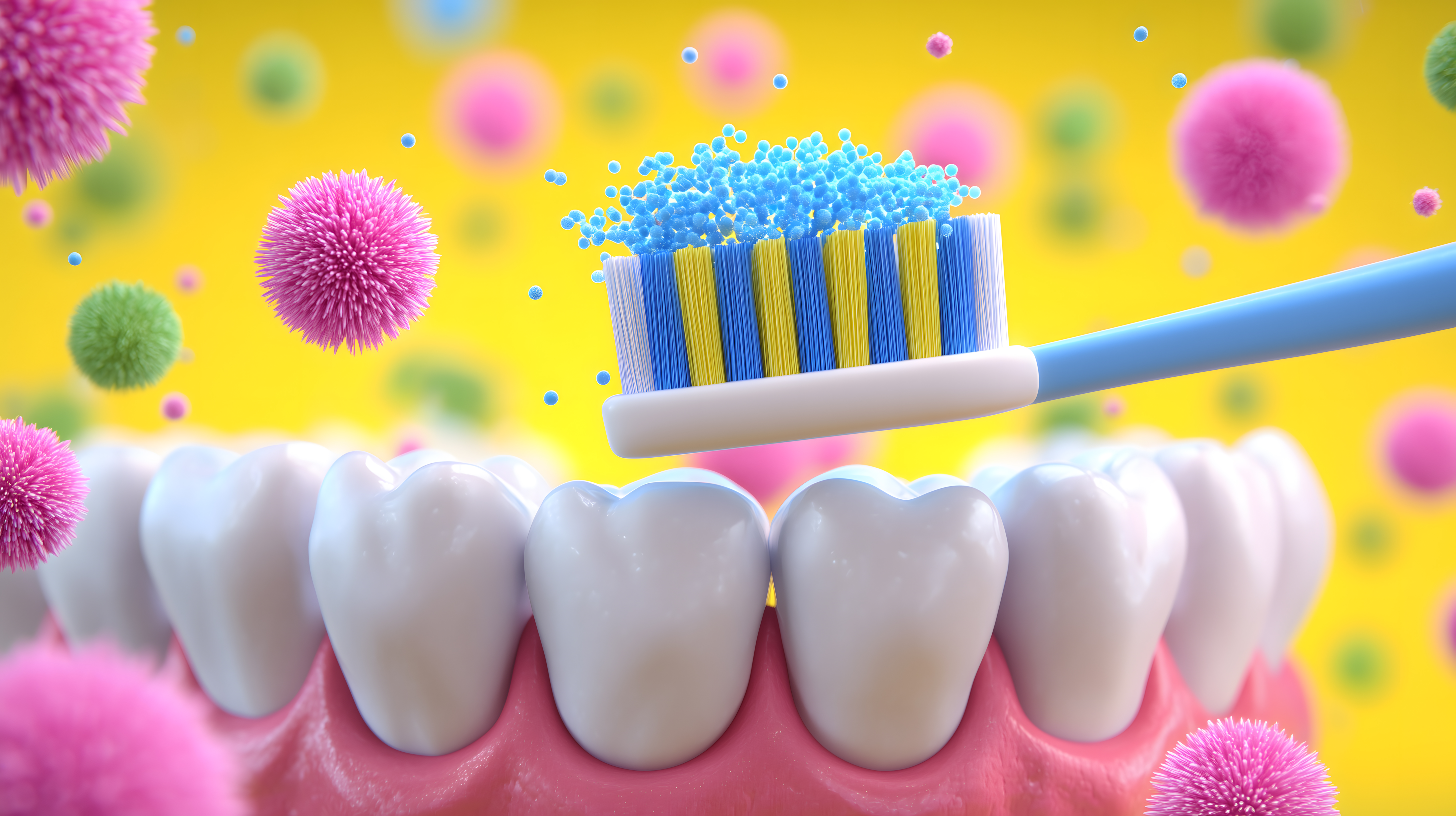 Dieses Stockfoto zeigt eine Nahaufnahme einer Zahnbürste mit bunten Bakterienformen im Hintergrund. Das Bild hat einen farbenfrohen, abstrakten Stil und lässt einen Eindruck von Zahn- und Mundpflege in einer lebendigen, bakteriellen Umgebung entstehen. Dieses einzigartige Foto eignet sich hervorragend für den Einsatz in Beiträgen zu Themen wie Hygiene, Gesundheit oder Zahnmedizin. Mit seiner hohen Auflösung und Creative-Commons-Lizenz ist es ein vielseitig nutzbares, kostenloses Bildmaterial für Blogs, Newsletter, Social-Media-Kanäle und Werbeanzeigen.