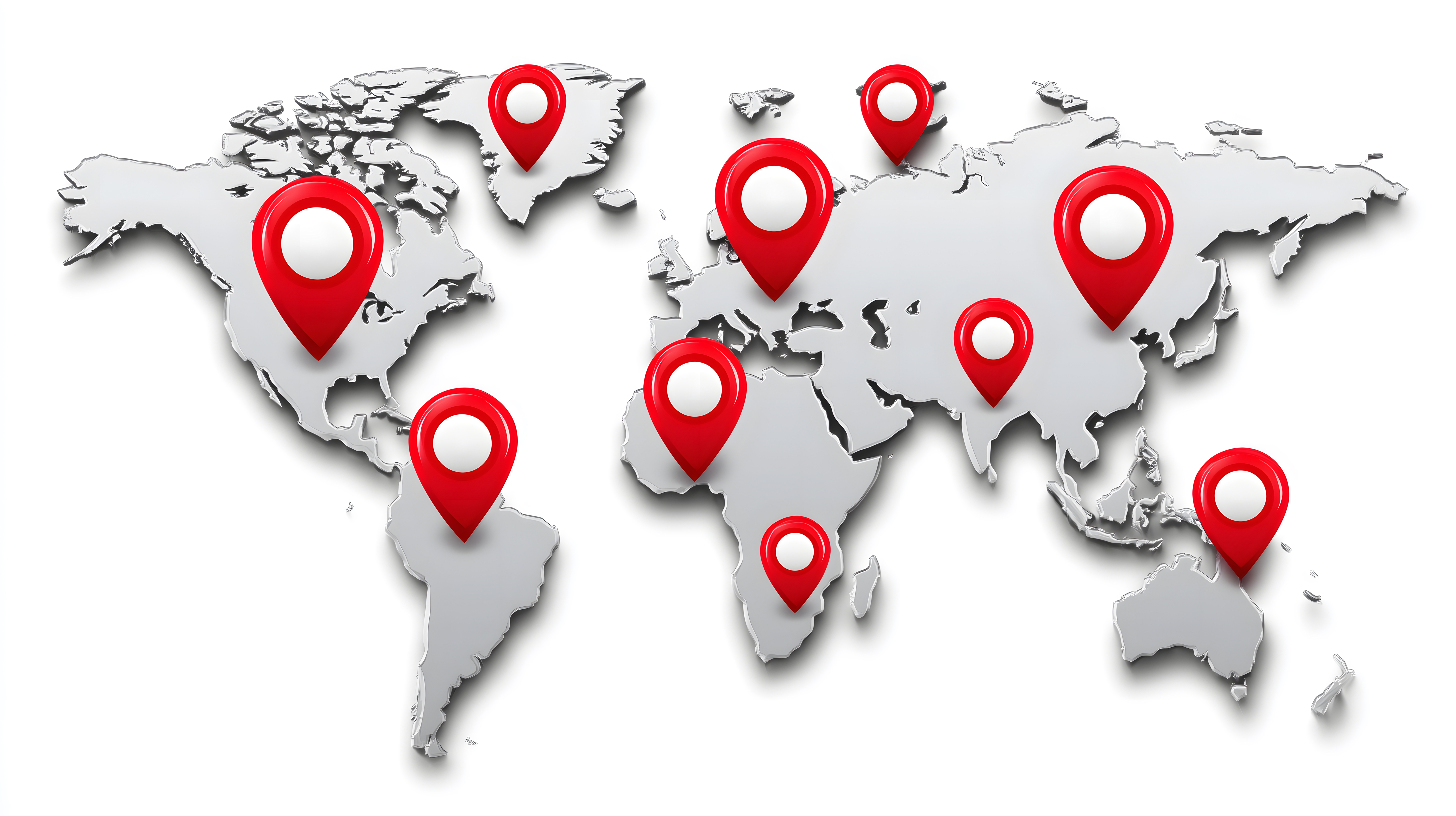 Dieses Bild zeigt eine moderne, dreidimensionale Weltkarte mit roten Standortmarkierungen, die verschiedene Orte auf dem Globus hervorheben. Die Karte ist in einem grauen, minimalistischen Stil gehalten, was ihr eine elegante und professionelle Ausstrahlung verleiht. Diese Darstellung ist ideal für den Einsatz in Präsentationen, Infografiken oder Artikeln rund um Themen wie Reisen, Wirtschaft, Logistik oder Technologie. Als kostenloses Stockfoto in hoher Auflösung und unter einer Creative-Commons-Lizenz ist dieses Bild frei verwendbar.