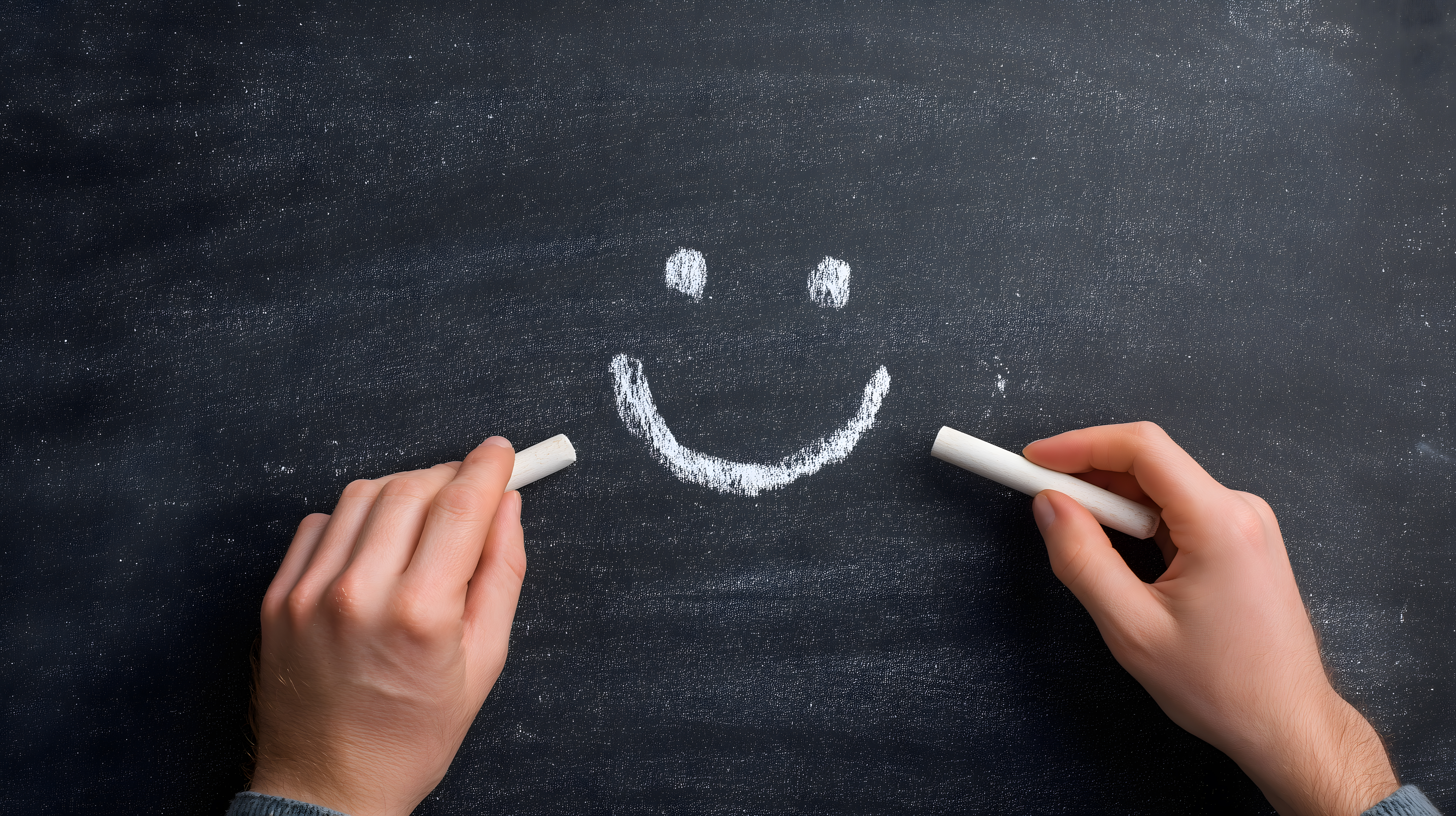 Das Bild zeigt eine schwarze Tafel oder Schultafel, auf der mit weißer Kreide ein fröhliches Smiley-Gesicht gezeichnet ist. Zwei Hände zeichnen oder malen gerade dieses Smiley auf die Tafel, was eine positive, motivierende und lehrreiche Stimmung vermittelt. Das Bild könnte ideal für Bildungsthemen, Schulwebsites, Unterrichtsmaterialien oder Artikel zum Thema Motivation und Freude am Lernen verwendet werden. Als hochwertiges, kostenloses Stockfoto in hoher Auflösung unter einer Creative-Commons-Lizenz ist es vielseitig einsetzbar, z.B. in Blogs, Newslettern oder Social-Media-Beiträgen.