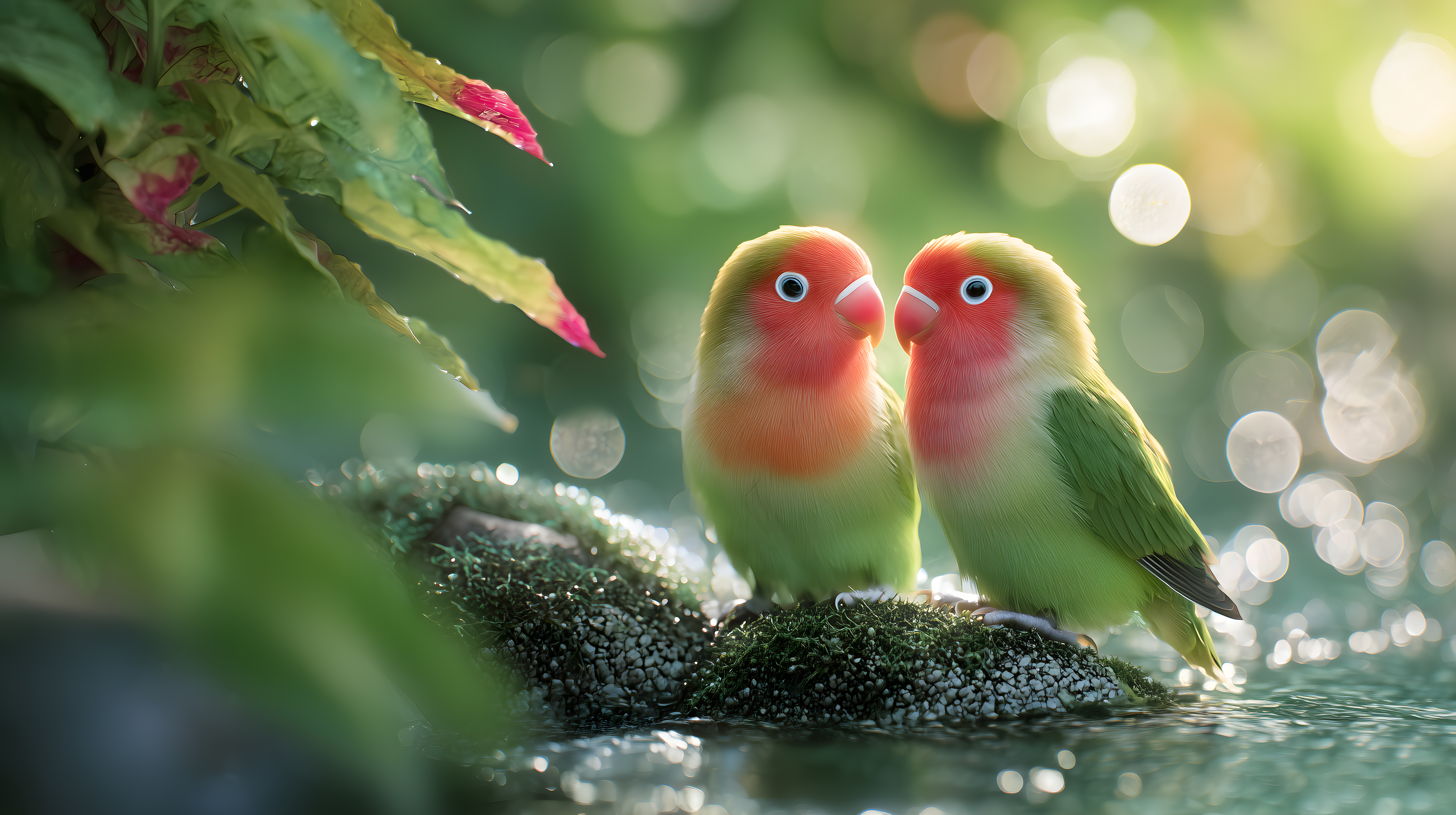 Dieses bezaubernde Bild zeigt zwei farbenfrohe Papageien, die auf einem moosbedeckten Stein sitzen, umgeben von üppiger Vegetation und glitzernden Wassertropfen. Die Vögel blicken einander zärtlich an, was eine romantische und friedliche Stimmung schafft. Die Szene ist voller lebendiger Farben und Kontraste - das Rot und Gelb der Papageien hebt sich wunderschön vom satten Grün der Blätter ab. Das Foto vermittelt ein Gefühl von Ruhe, Freiheit und Harmonie in der Natur. Es eignet sich hervorragend für den Einsatz in Blogs, Newslettern, Social-Media-Kampagnen oder Werbematerialien, die eine natürliche, entspannte Atmosphäre schaffen wollen. Dieses hochauflösende, kostenlose Stockfoto steht unter einer Creative-Commons-Lizenz zur Verfügung.