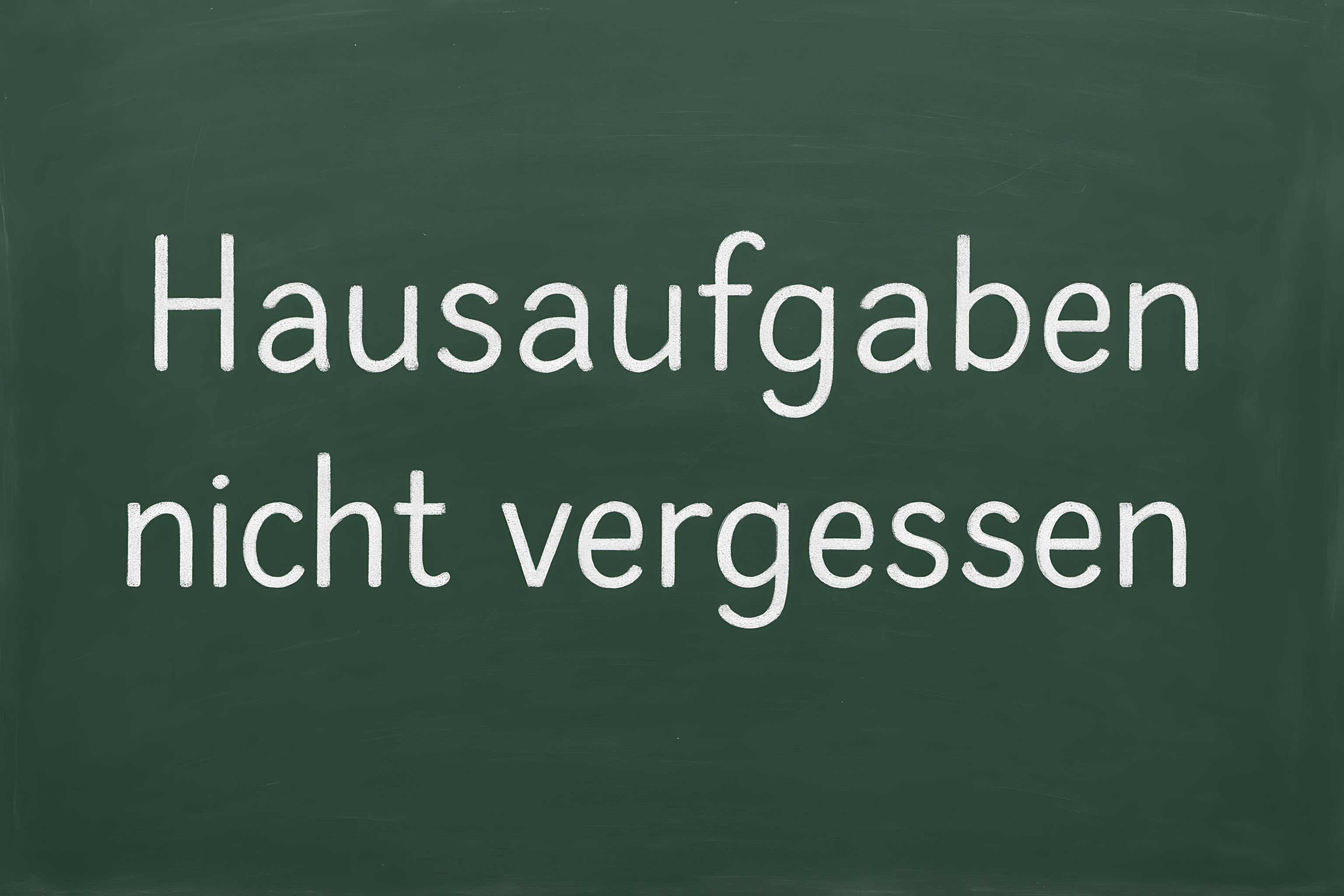 Das Bild zeigt eine grüne Schultafel, auf der in weißer Kreide die Aufschrift 'Hausaufgaben nicht vergessen' zu lesen ist. Diese Botschaft dient als Erinnerung für Schüler, ihre Hausaufgaben nicht zu vernachlässigen. Das Foto vermittelt einen klassischen Lernkontext und kann beispielsweise in Blogs, Newslettern oder sozialen Medien rund um Bildungsthemen verwendet werden. Dieses hochauflösende Stockfoto ist unter der Creative-Commons-Lizenz frei nutzbar.
