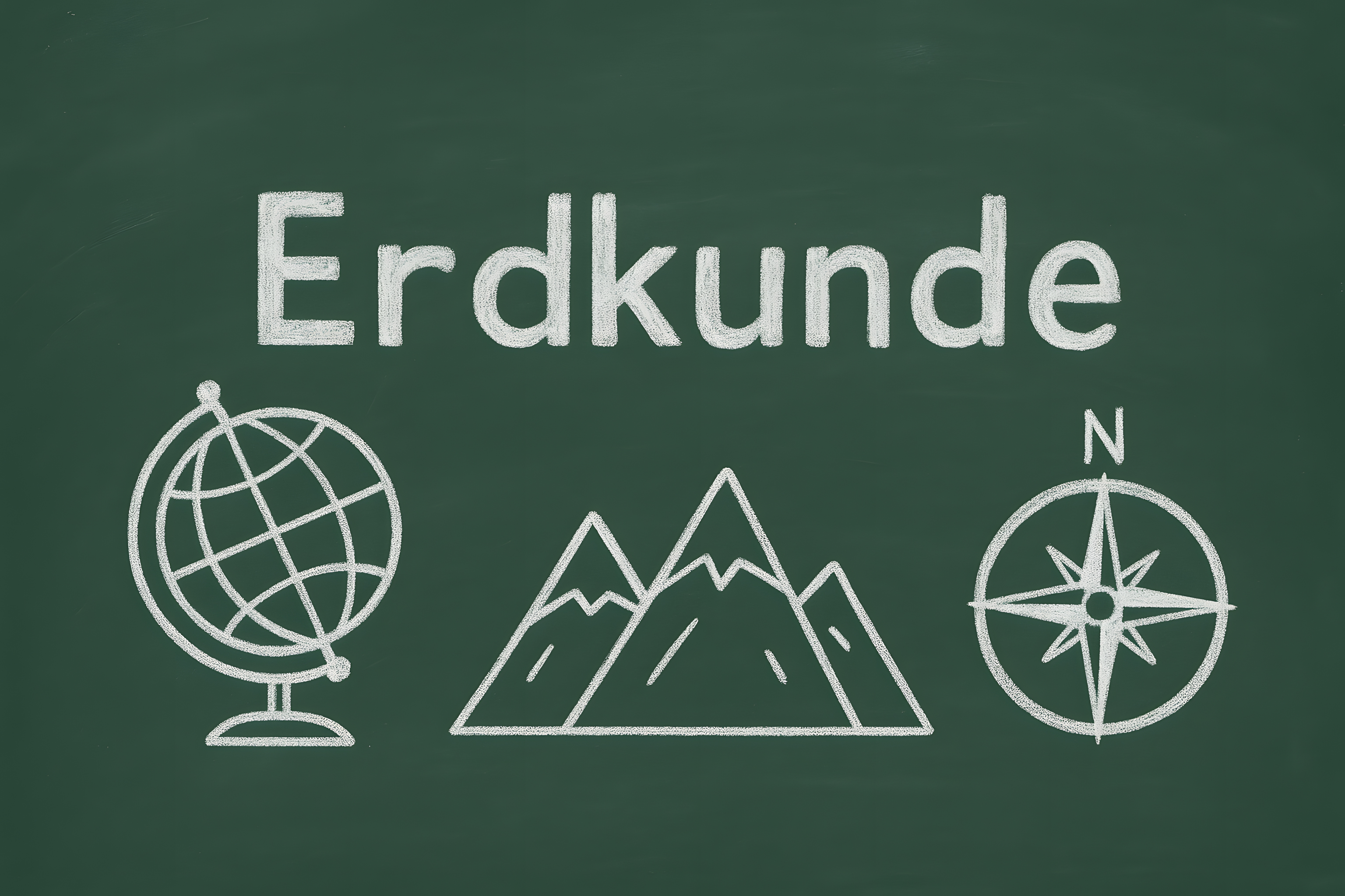 Dieses Foto zeigt eine detaillierte Darstellung von Symbolen und Grafiken, die typischerweise im Geographieunterricht verwendet werden. Auf einer grünen Tafel sind Begriffe wie 'Erdkunde' sowie grafische Elemente wie ein Globus, stilisierte Bergketten und ein Kompass zu sehen. Diese Bildkomposition vermittelt den Eindruck eines Lernumfelds für das Fach Geographie und könnte sich ideal für die Verwendung in Bildungskontexten, Blogs, Newslettern oder Social-Media-Kanälen eignen. Als kostenloses Stockfoto in hoher Auflösung und unter einer Creative-Commons-Lizenz ist dieses Bild vielseitig einsetzbar.