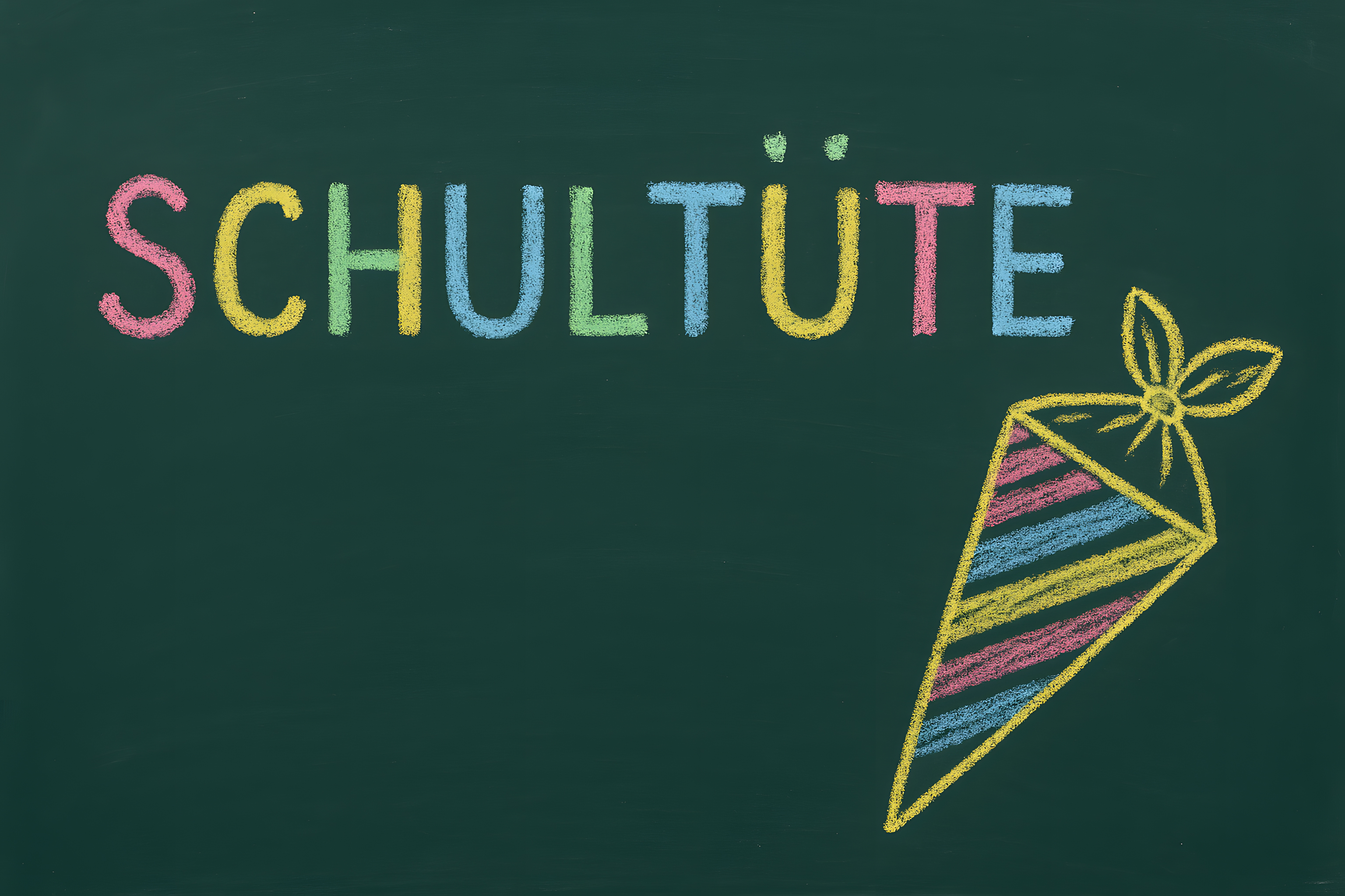 Das Bild zeigt eine bunte Kreidezeichnung einer Schultüte auf einer grünen Tafel. Die Schultüte ist in leuchtenden Farben wie Rot, Gelb, Blau und Grün gezeichnet und hat eine Blume an der Spitze. Die Komposition ist einfach und klar, mit viel Freiraum für Text oder Gestaltung. Dieses kostenlose Stockfoto in hoher Auflösung eignet sich ideal für Blogbeiträge, Newsletter, Social-Media-Posts oder Werbematerial rund um den Schulanfang, Einschulung oder Kreativität in der Schule. Es steht unter einer Creative-Commons-Lizenz zur Verfügung.