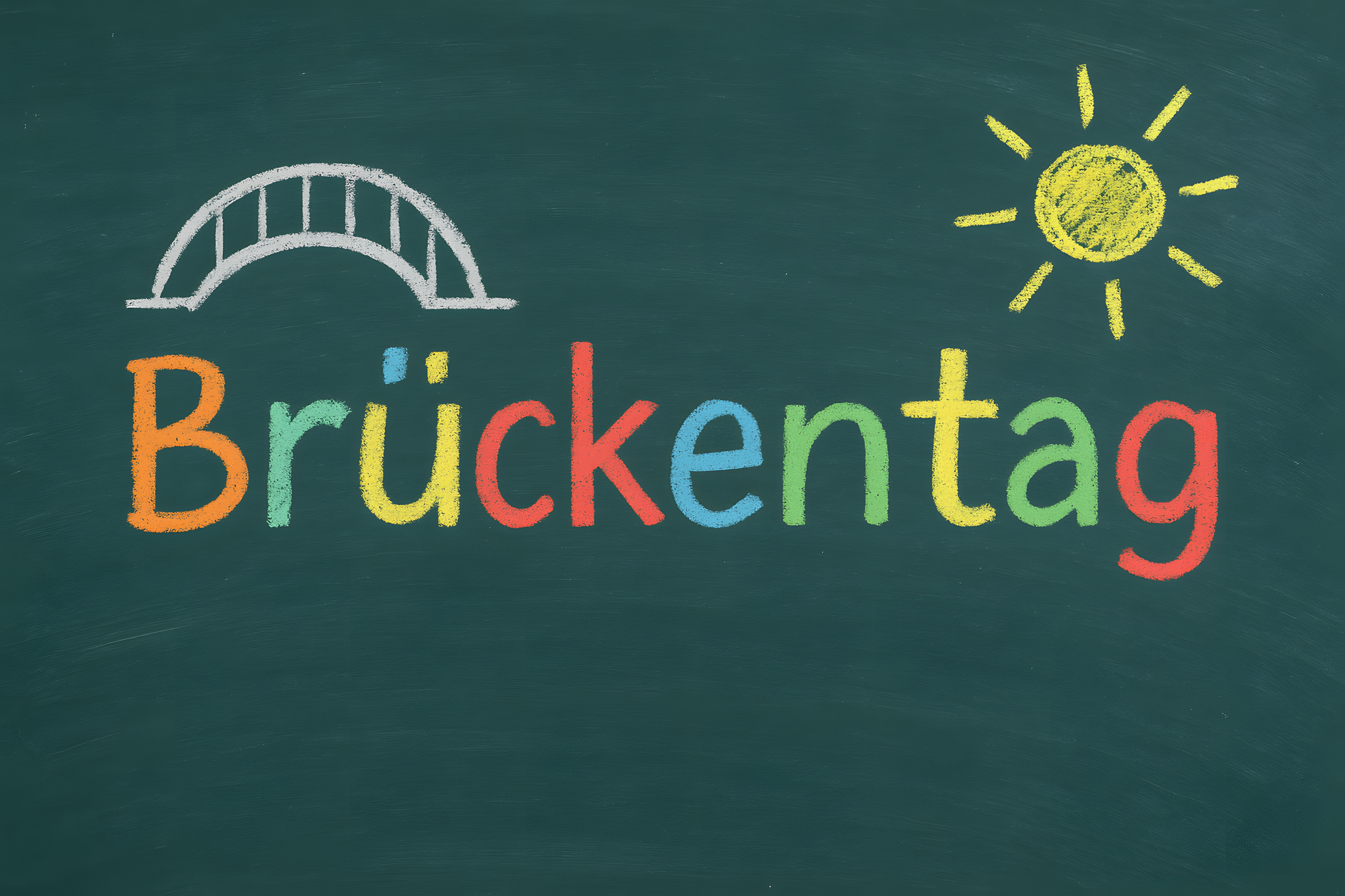 Das Bild zeigt eine grüne Schultafel, auf der mit bunter Kreide eine Brücke und eine Sonne gemalt sind. Die Brücke ist als grafisches Element in den Hintergrund integriert, während die Sonne prominent im Vordergrund platziert ist. Dieses Motiv vermittelt eine positive, einladende Stimmung und könnte ideal als Hintergrundbild oder Dekoration für Unterrichtsmaterialien, Blogbeiträge, Social-Media-Posts oder Werbeanzeigen rund um Themen wie Bildung, Freizeit oder Feiertage eingesetzt werden. Das hochauflösende Foto ist als kostenloses Stockfoto unter einer Creative-Commons-Lizenz verfügbar.