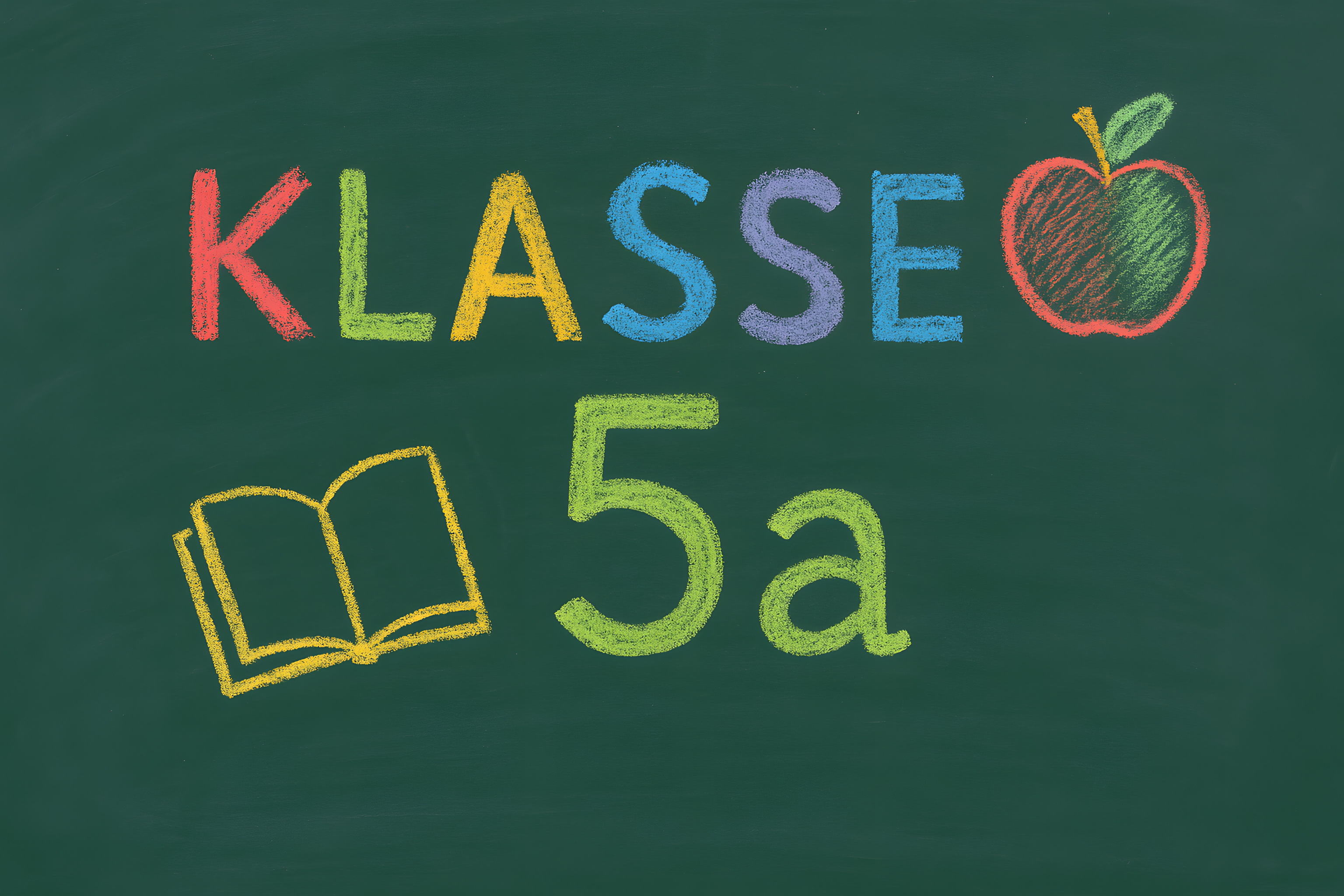 Dieses Foto zeigt eine grüne Tafel, auf der der Schriftzug 'KLASSE 5a' sowie ein aufgemalter Apfel und ein offenes Buch zu sehen sind. Die Tafel ist mit bunter Kreide beschriftet und lässt einen Schulalltag in der 5. Klasse erahnen. Das Bild strahlt Kreativität, Lernfreude und eine lebendige Klassenatmosphäre aus. Es eignet sich hervorragend für den Einsatz in Blogbeiträgen, Newslettern oder sozialen Medien, die Themen rund um Bildung, Schule und kindliche Entwicklung behandeln. Das hochauflösende, kostenlose Stockfoto steht unter einer Creative-Commons-Lizenz zur Verfügung.