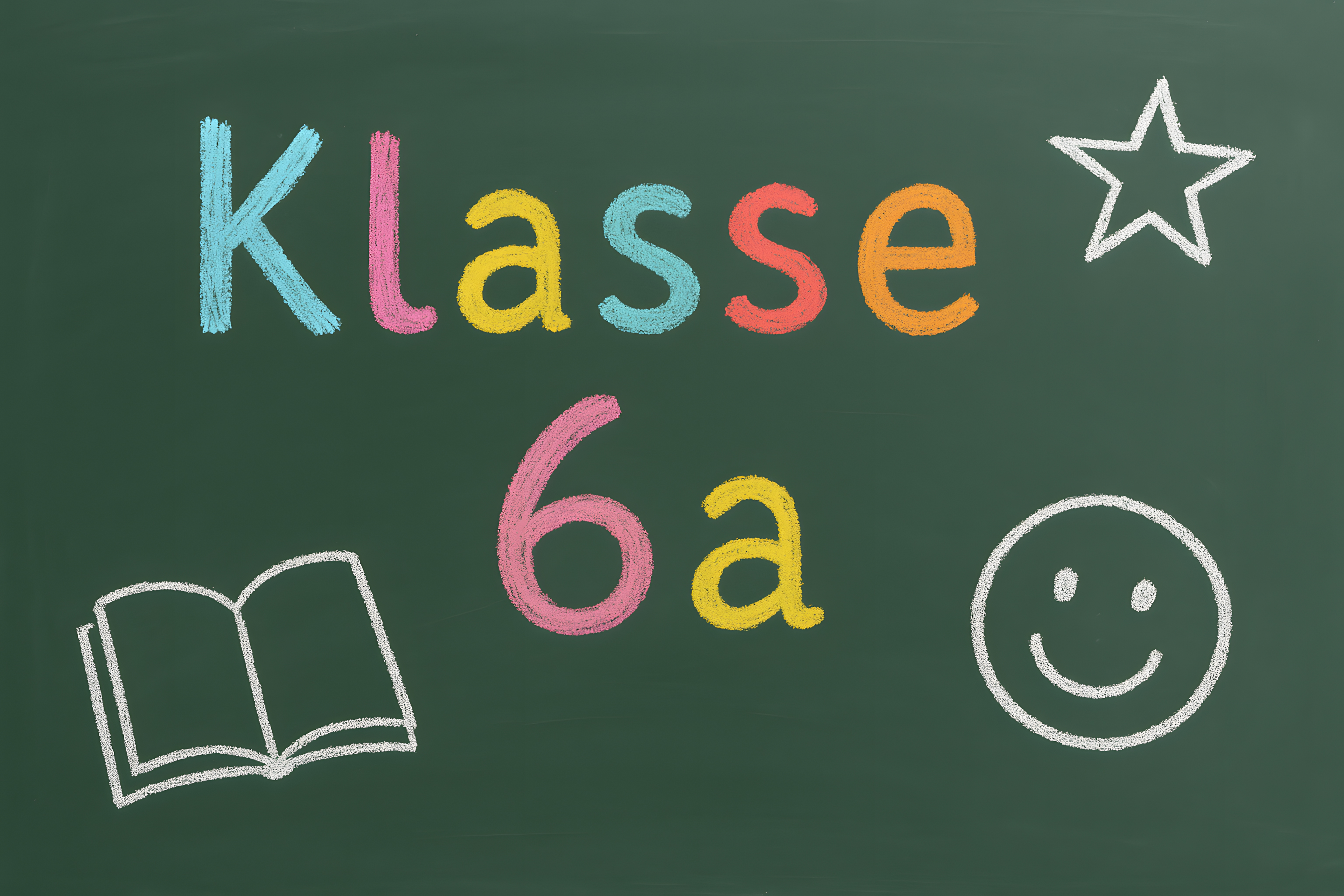 Das Foto zeigt eine grüne Kreidetafel mit der Aufschrift 'Klasse 6a' in farbigen, kreativen Buchstaben. Daneben sind verschiedene Symbole wie ein Stern, ein Smiley und ein Buch zu sehen, die eine positive und motivierende Stimmung vermitteln. Diese Tafelaufschrift könnte in einem Klassenzimmer oder Schulraum zu finden sein und vermittelt den Eindruck einer fröhlichen, engagierten Lernumgebung. Als kostenloses Stockfoto in hoher Auflösung und unter Creative-Commons-Lizenz eignet sich dieses Bild hervorragend für die Verwendung in Blogs, Newslettern oder Werbematerialien rund um die Themen Bildung, Schule und Lernen.