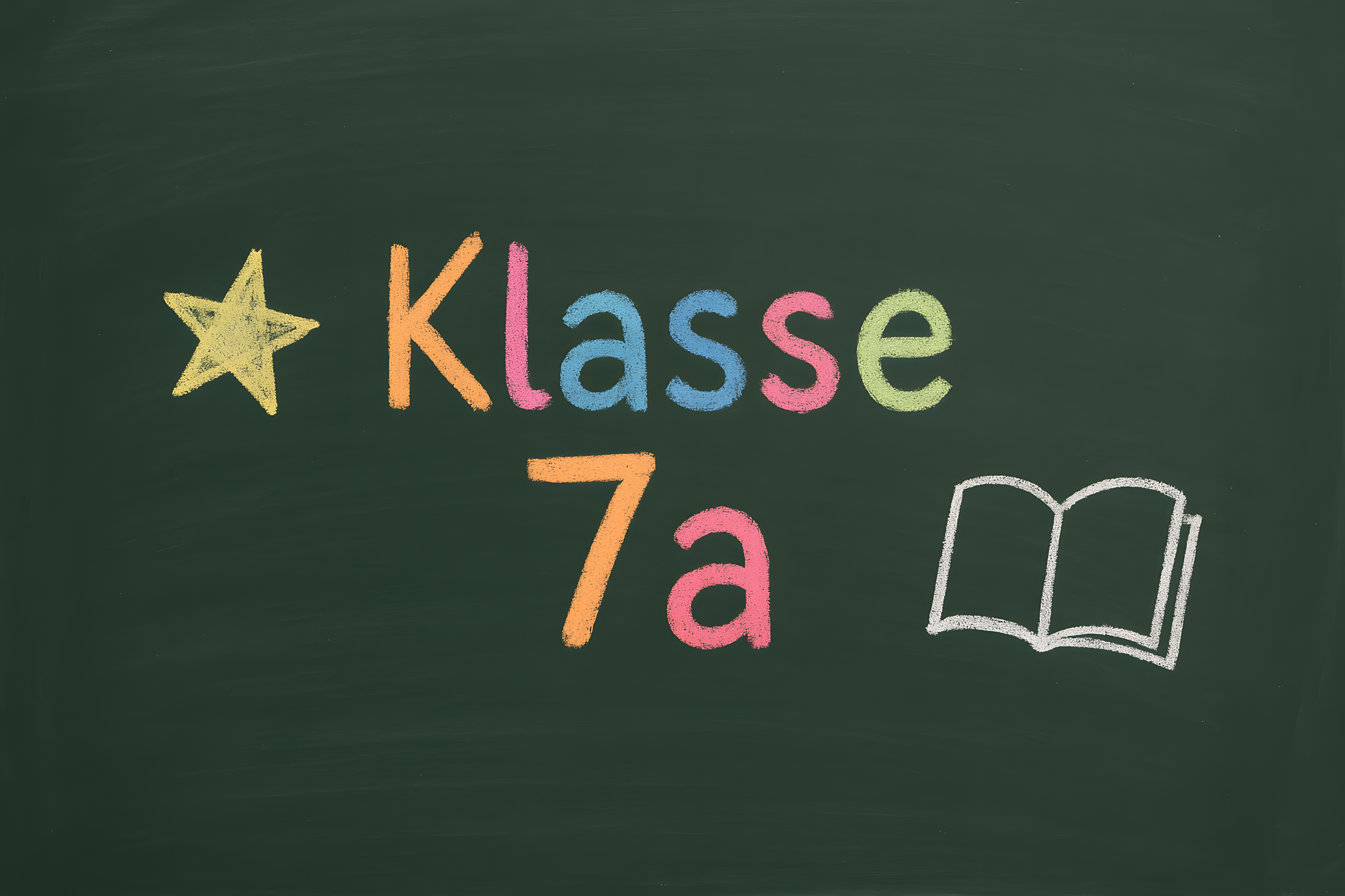 Das Bild zeigt eine grüne Tafel mit einer bunten Kreideaufschrift 'Klasse 7a'. Darunter sind ein Buch-Symbol und ein Stern als zusätzliche Elemente zu sehen. Die Farbauswahl ist fröhlich und kindgerecht, was auf einen Klassenraum oder Schulkontext hindeutet. Das Foto eignet sich ideal für Blogbeiträge, Newsletter oder Social-Media-Posts rund um Themen wie Bildung, Lernen, Schule oder Kreativität im Klassenzimmer. Als kostenloses Stockfoto in hoher Auflösung und unter Creative-Commons-Lizenz kann es vielfältig eingesetzt werden.