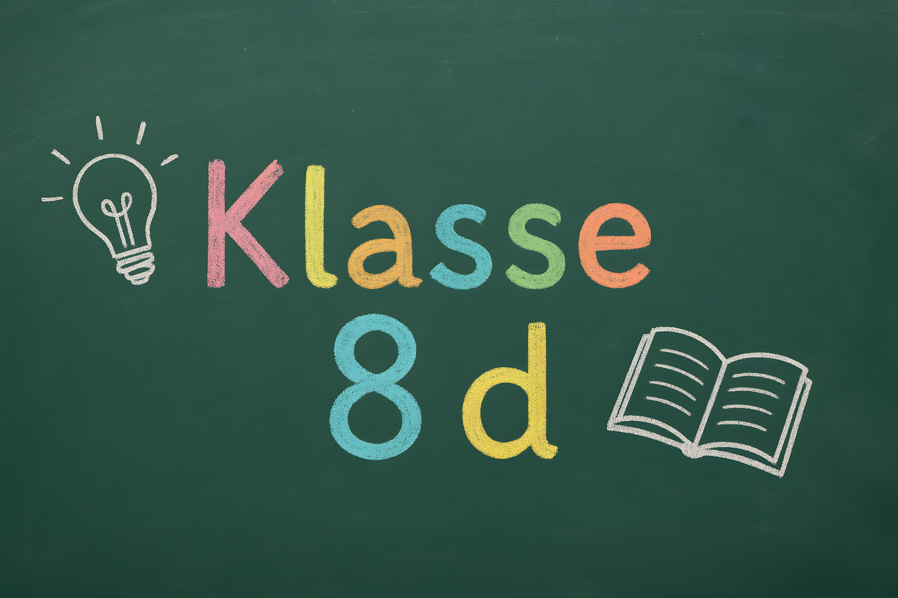 Das Bild zeigt eine grüne Tafel mit bunten Kreidezeichnungen und Text. Zu sehen sind eine Glühbirne als Symbol für Ideen, ein aufgeschlagenes Buch als Sinnbild für Bildung sowie der Schriftzug 'Klasse 8d'. Die farbenfrohe Illustration auf der Tafel vermittelt ein kreatives, lernfreundliches Umfeld. Dieses Stockfoto eignet sich hervorragend für Bildungsbeiträge, Unterrichtsmaterialien oder Werbung für Schulen und Lerneinrichtungen. Das hochauflösende Bild steht unter einer Creative-Commons-Lizenz kostenfrei zur Verfügung.