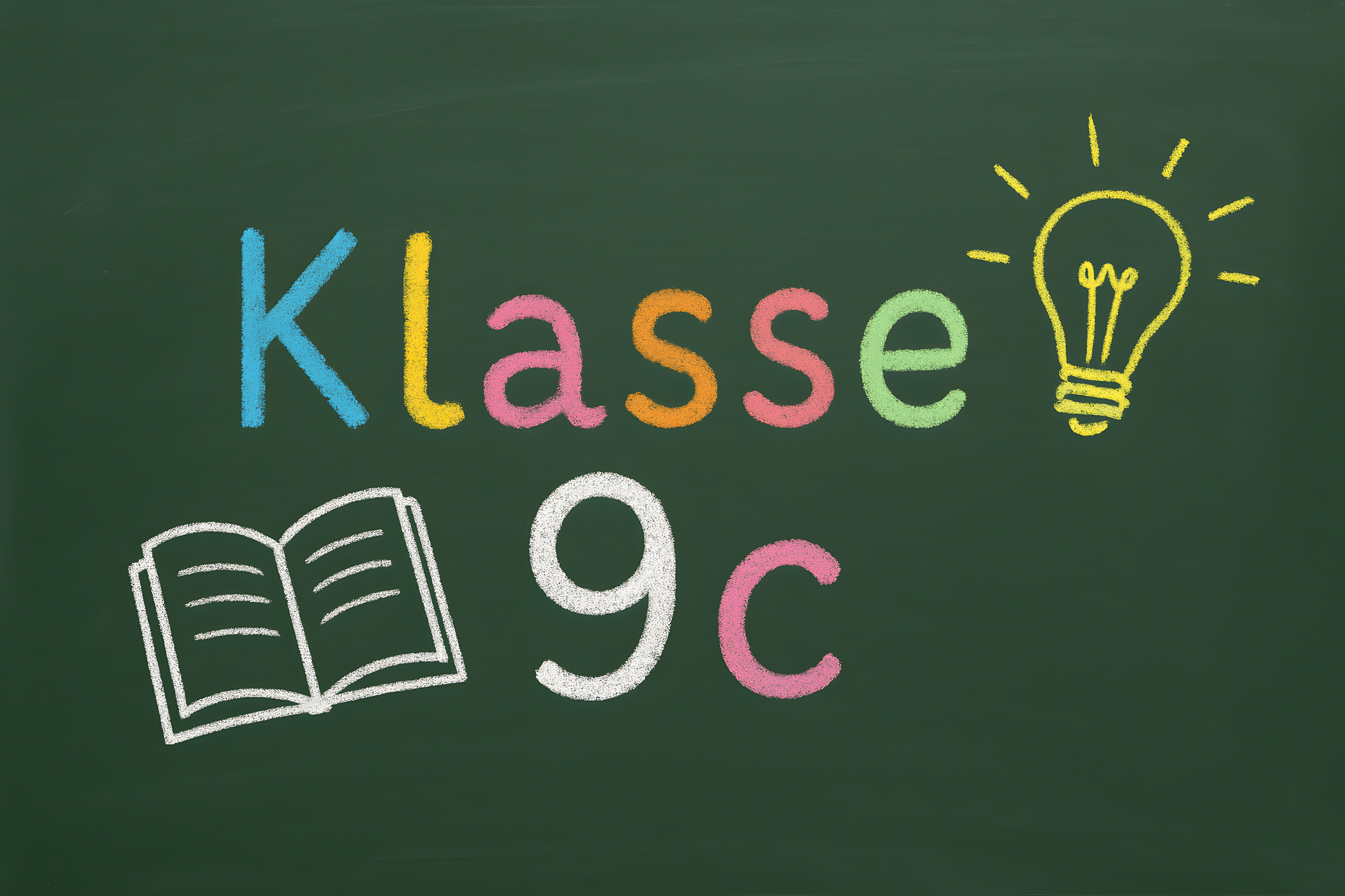 Das Bild zeigt eine grüne Tafel, auf der mit bunter Kreide die Aufschrift 'Klasse 9c' und ein gelbes Glühbirnen-Symbol sowie ein offenes Buch-Symbol geschrieben und gemalt sind. Die farbige, kreative Gestaltung der Tafel vermittelt eine lebendige, inspirierende Lernumgebung für Schüler der 9. Klasse. Das Foto eignet sich hervorragend als kostenloses Stockfoto für Blogs, Newsletter, Social-Media-Posts oder Werbematerialien rund um Themen wie Schule, Bildung, Lernen und Kreativität. Die hochauflösende Datei steht unter einer Creative-Commons-Lizenz zur Verfügung.
