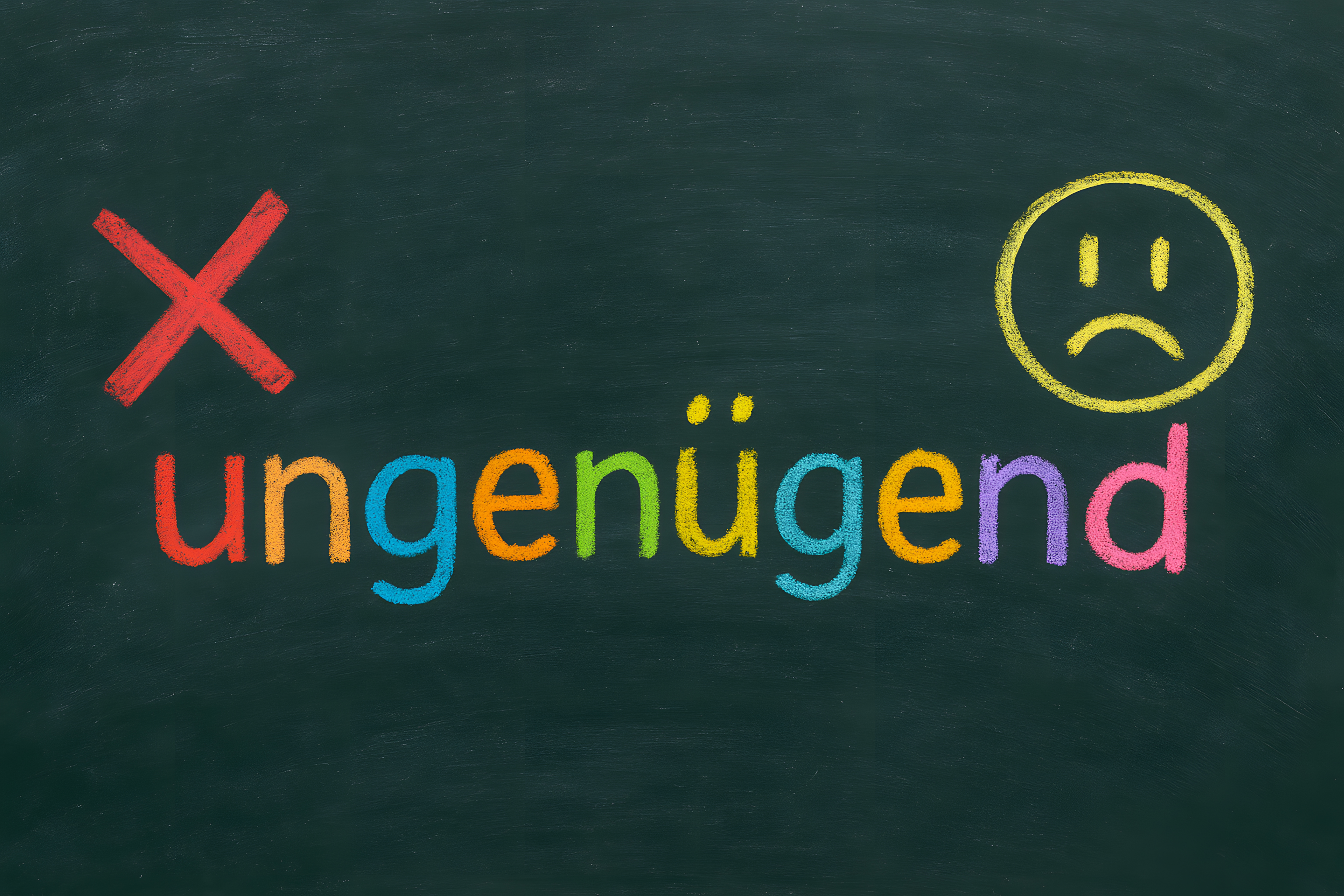 Das Bild zeigt eine grüne Tafel, auf der mit bunter Kreide das Wort 'ungenügend' geschrieben steht. Neben dem Wort befindet sich ein gelber Smiley mit traurigem Gesichtsausdruck. Die Tafel vermittelt einen Eindruck von negativer Bewertung, Kritik und Enttäuschung. Das Bild kann in Blogbeiträgen, E-Mail-Newslettern, Social-Media-Posts oder Werbematerialien eingesetzt werden, um Konzepte wie Leistungsmessung, Feedback oder Emotionen visuell darzustellen. Als kostenloses Stockfoto in hoher Auflösung und unter einer Creative-Commons-Lizenz ist es flexibel und einfach in verschiedene Projekte integrierbar.