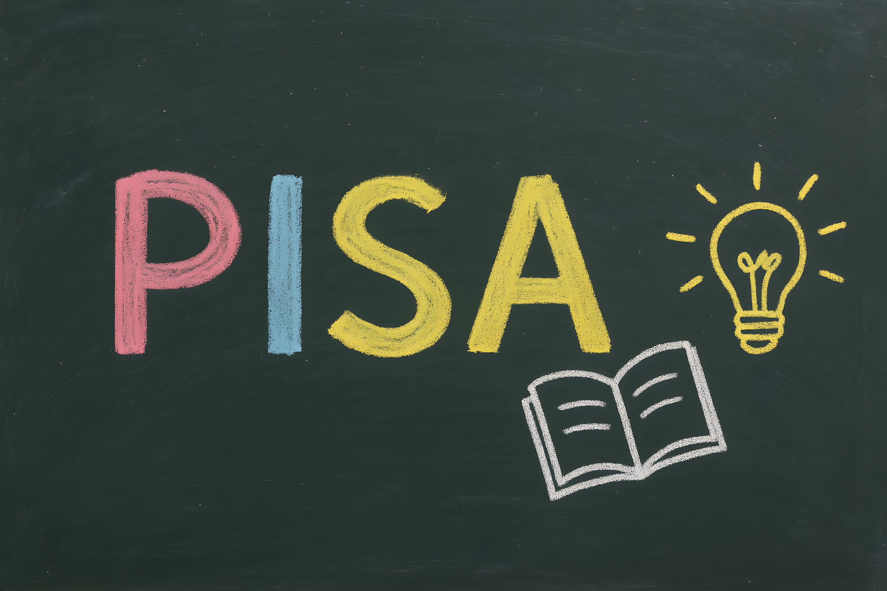 Das Bild zeigt eine Kreidezeichnung auf einer grünen Tafel. Der Schriftzug 'PISA' ist in bunten Farben geschrieben, gefolgt von Symbolen wie einer Glühbirne für Inspiration und einem offenen Buch für Bildung. Diese Kombination von Elementen vermittelt die Idee von Kreativität, Innovation und Lernen. Das Foto eignet sich hervorragend als kostenlose, hochauflösende Stockfoto-Vorlage für verschiedene Einsatzzwecke wie Social-Media-Posts, Newsletter-Grafiken oder Blogbeiträge rund um die Themen Bildung, Schule und Studium. Die farbenfrohe Gestaltung und die symbolischen Elemente machen das Bild zu einem vielseitig einsetzbaren, ansprechenden Motiv.