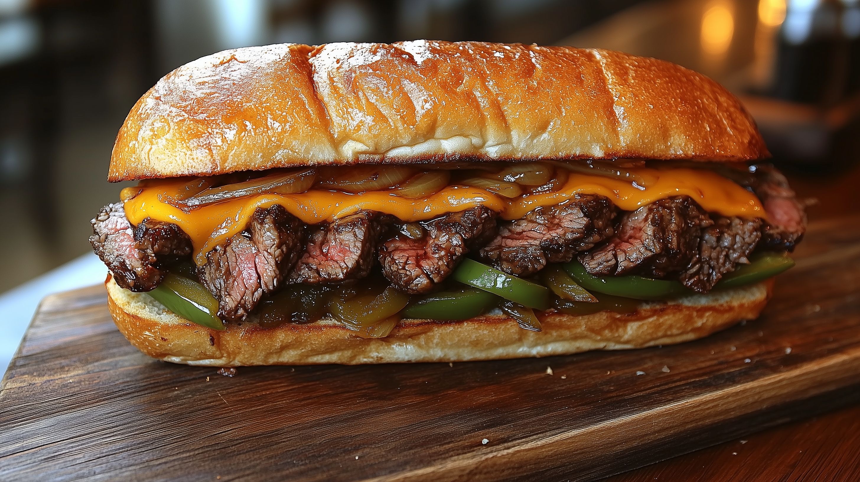 Dieses köstliche Philly Cheese Steak Sandwich zeigt ein typisches amerikanisches Fastfood-Gericht mit zarter Rindfleischfüllung, geschmolzenem Käse und knusprigen Brotscheiben. Das Bild eignet sich perfekt als hochwertiges Stockfoto für Blogbeiträge, Social-Media-Posts oder Werbematerialien rund um das Thema kulinarische Genüsse und amerikanische Esskultur. Das hochwertige Foto im freien Creative-Commons-Lizenzformat bietet Ihnen eine tolle Möglichkeit, Ihre Online-Inhalte mit einem appetitlichen und authentischen Bild anzureichern.