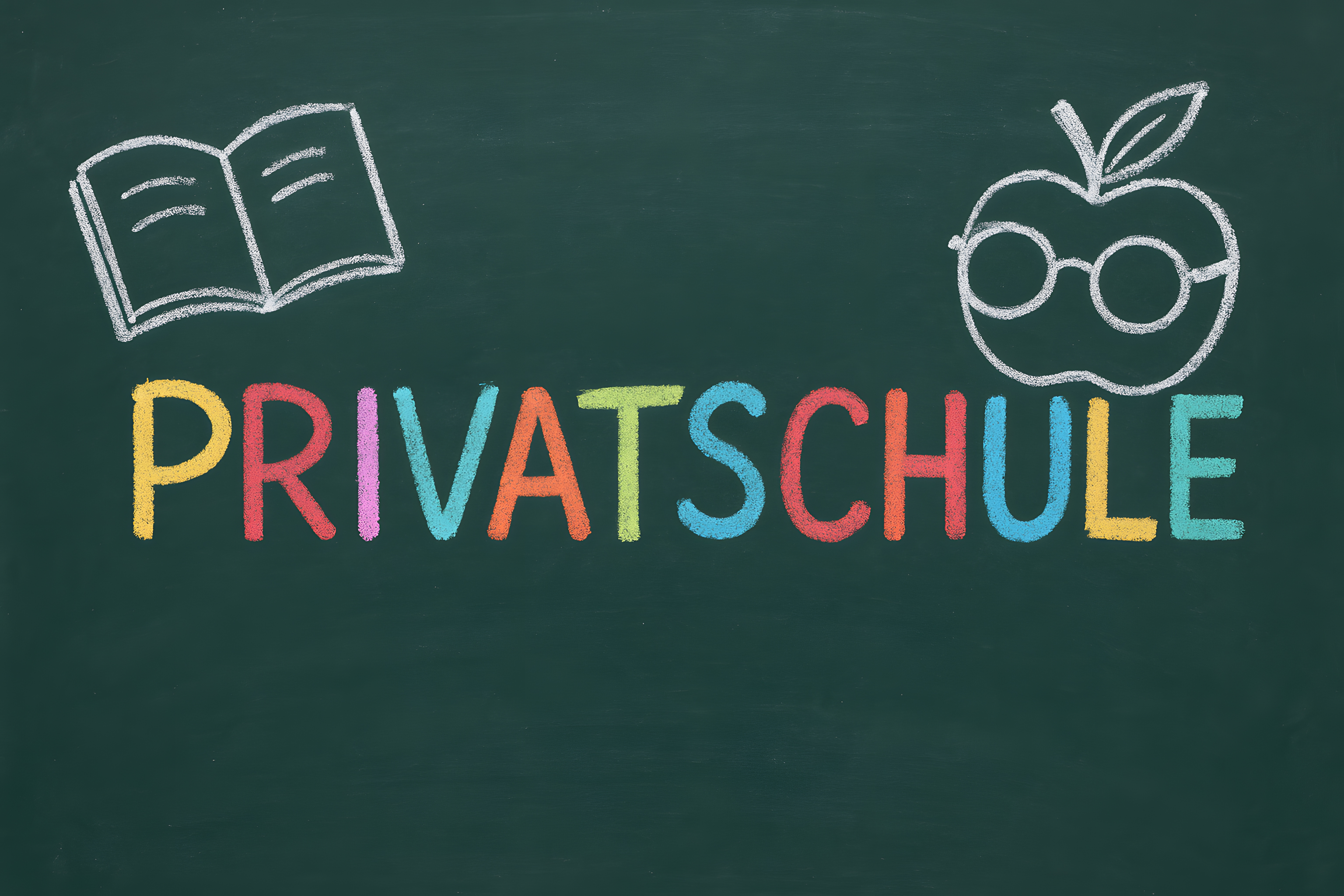 Dieses Stockfoto zeigt eine bunte Kreidetafel, auf der das Wort 'Privatschule' in farbenfroher Kreide geschrieben steht. Daneben sind Symbole wie ein Buch und ein Apfel mit Brille zu sehen, die auf den Bildungskontext hinweisen. Das Foto vermittelt einen kreativen, verspielten Eindruck und eignet sich daher gut für Anwendungen in den Bereichen Bildung, Schule, Lernen und Kreativität. Das hochauflösende Bild ist unter einer Creative-Commons-Lizenz frei verwendbar und kann beispielsweise in Blogbeiträgen, Newslettern oder Social-Media-Posts eingesetzt werden.