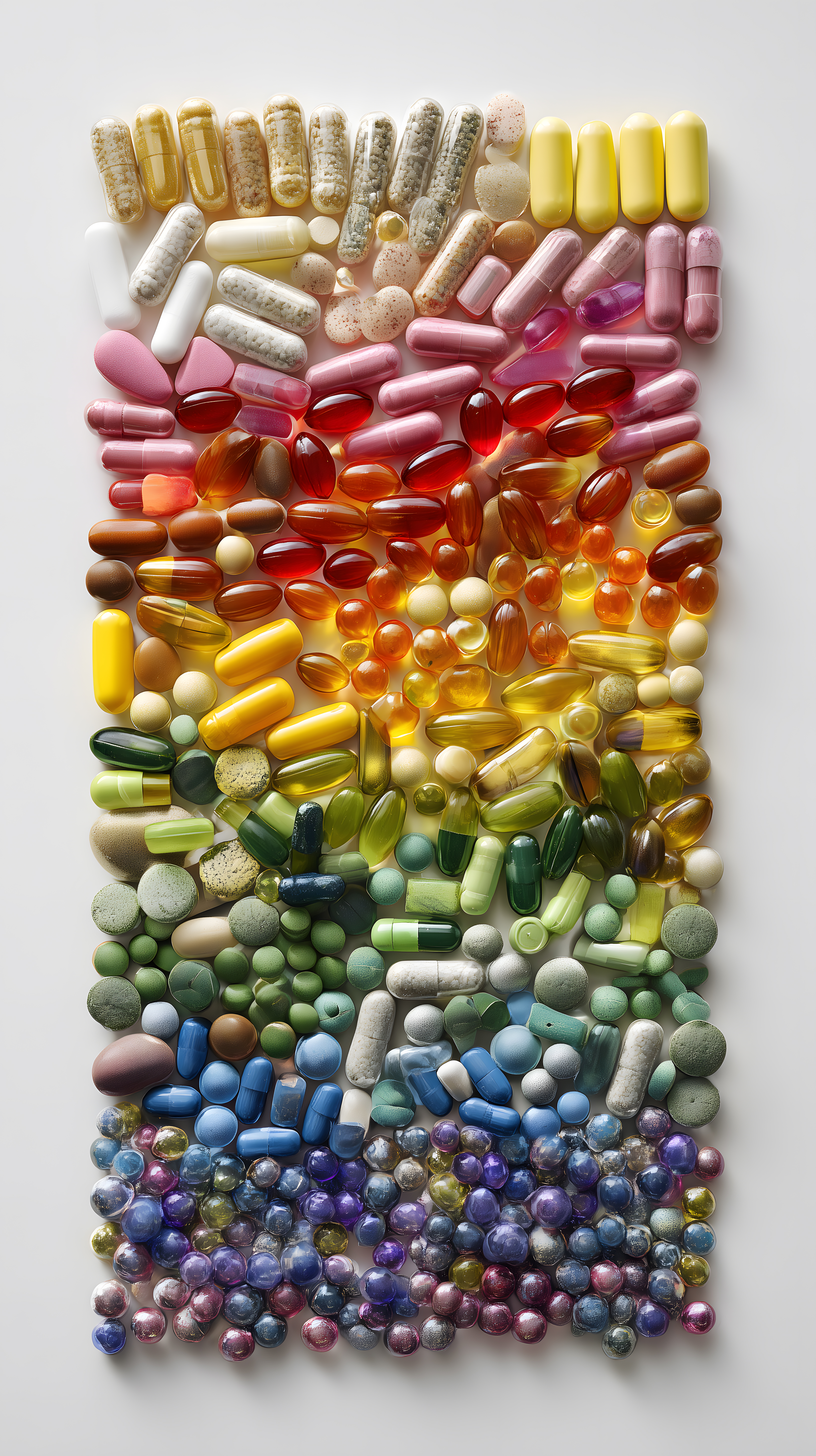 Dieses Bild zeigt eine farbenfrohe Zusammenstellung verschiedener Pillen und Tabletten in Regenbogenfarben. Die Objekte wurden sorgfältig nach ihrer Farbe angeordnet, sodass ein stimmungsvolles, abstraktes Muster entsteht. Das Foto eignet sich hervorragend als Hintergrundbild für Websites, Social-Media-Posts oder Werbekampagnen in den Bereichen Pharmazie, Gesundheit und Wellness. Dieses hochauflösende Stockfoto ist unter der Creative-Commons-Lizenz kostenfrei für private und kommerzielle Zwecke nutzbar.