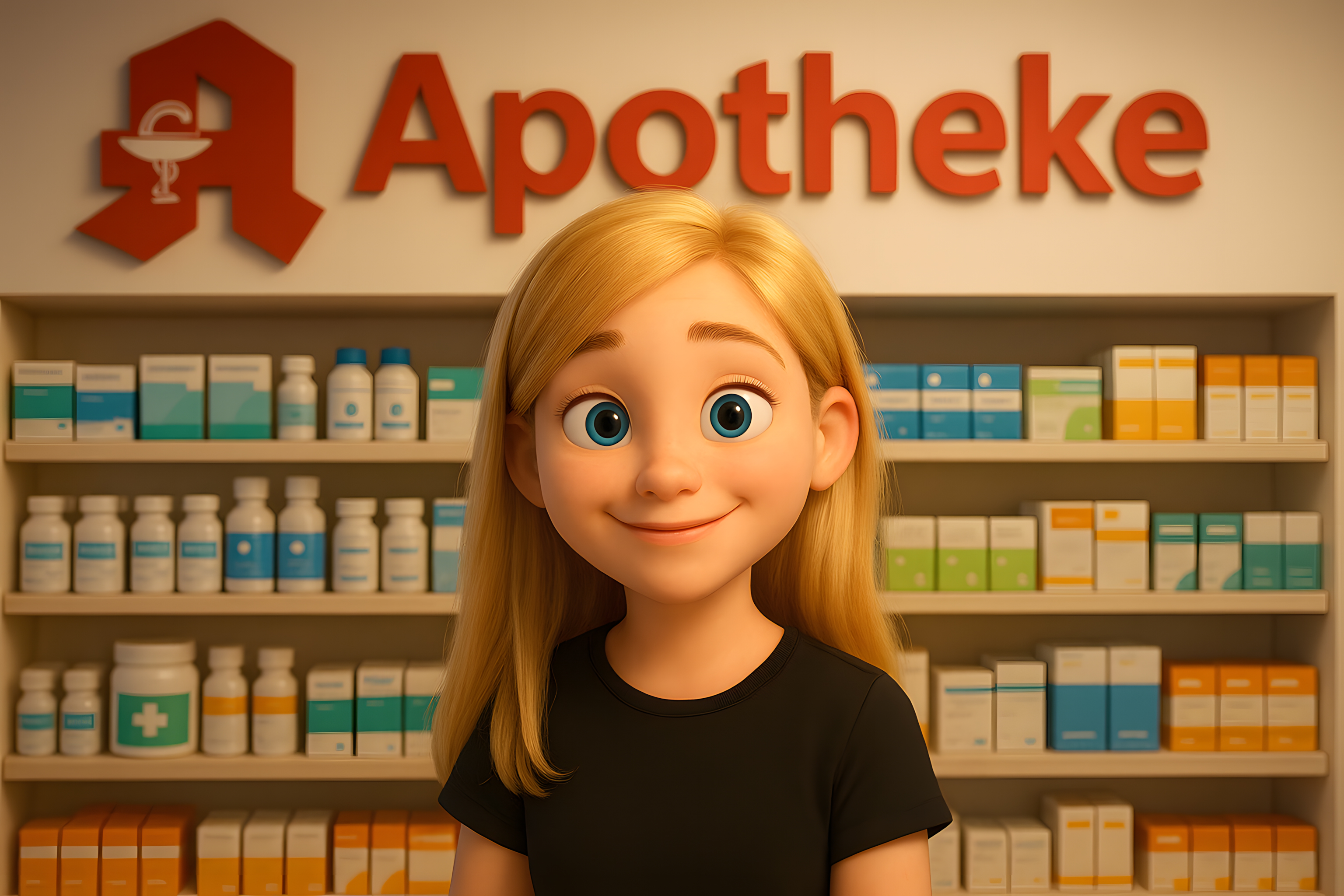 Das Bild zeigt eine lächelnde, blonde Frau, die vermutlich eine Apotheken-Mitarbeiterin ist. Sie steht vor einem Regal voller verschiedener Medikamente und Pharmazieprodukte. Die Regale sind in warmen Farbtönen gehalten und geben einen Eindruck von der Produktvielfalt und Ordnung einer Apotheke. Das Foto eignet sich hervorragend für den Einsatz in Blogs, Newslettern, Social-Media-Beiträgen oder Werbematerialien rund um das Thema Gesundheit, Medizin und Pharmazie. Es ist hochauflösend und unter einer Creative-Commons-Lizenz verfügbar.