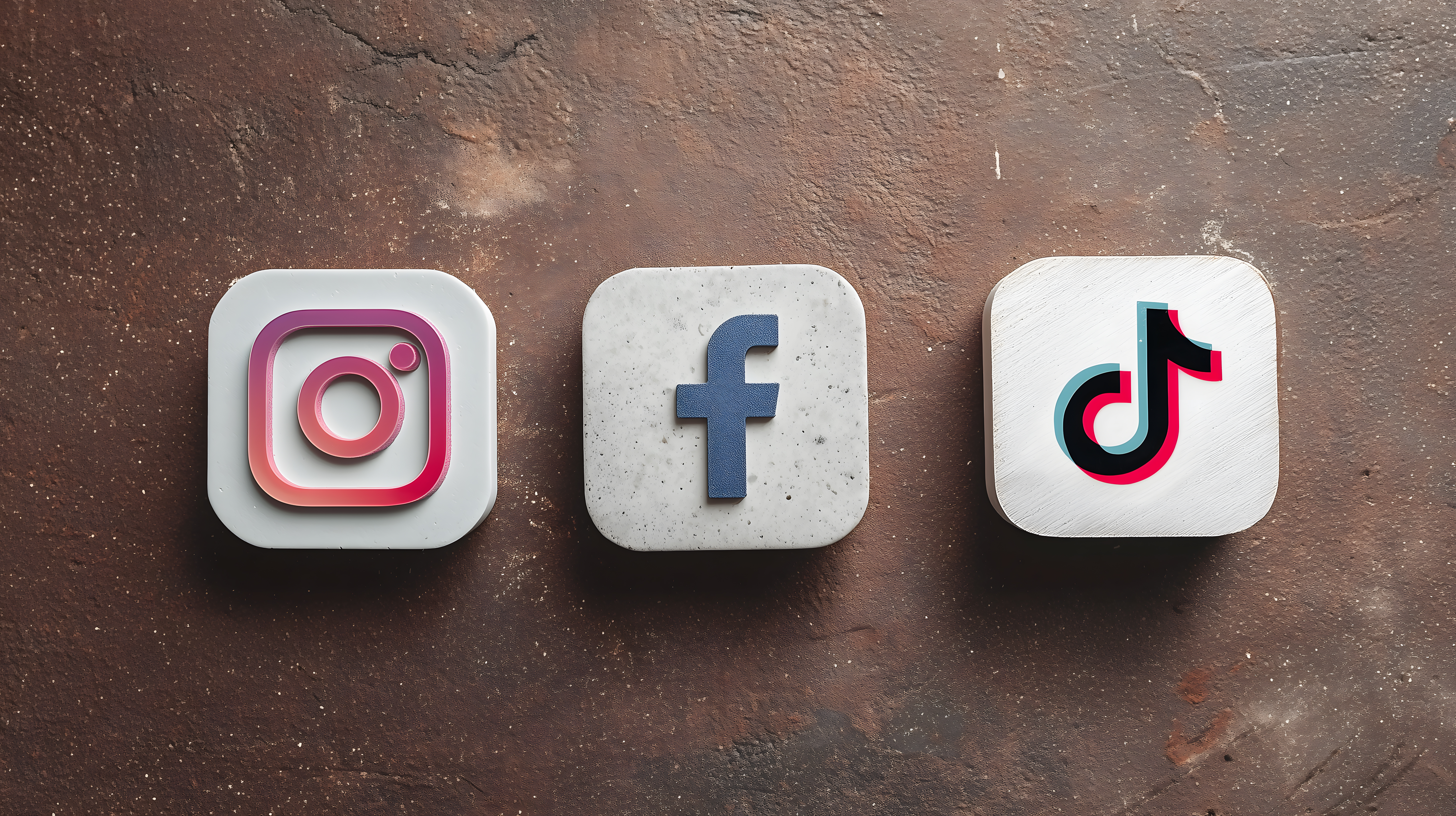 Dieses hochauflösende Stockfoto zeigt die ikonischen Logos von drei der bekanntesten Social Media Plattformen - Instagram, Facebook und TikTok. Die farbenfrohen, grafischen Symbole sind auf einem rauen, dunklen Untergrund angeordnet, was einen modernen und minimalistischen Stil erzeugt. Dieses Bild eignet sich hervorragend für die Verwendung in Blogbeiträgen, Newsletter-Designs, Social Media-Posts oder Werbematerialien, die sich mit digitalen Trends, Online-Marketing oder Tech-Themen befassen. Als kostenloses Stockfoto unter der Creative Commons-Lizenz kann es frei genutzt werden.