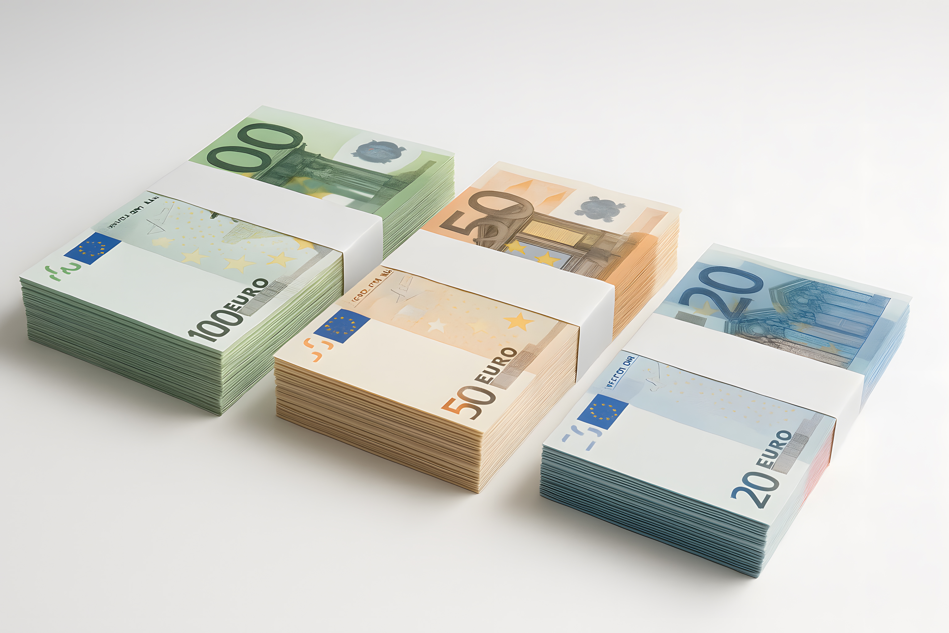 Das Bild zeigt einen Stapel von Euro-Banknoten in verschiedenen Stückelungen, sorgfältig geordnet auf einem weißen Hintergrund. Die Banknoten sind in Gruppen unterteilt und zeigen die unterschiedlichen Werte von 100, 50 und 20 Euro. Die Anordnung und Präsentation der Geldscheine vermittelt ein Gefühl von Wohlstand, Reichtum und Finanzkraft. Dieses hochauflösende Stockfoto eignet sich perfekt für Blogs, Newsletter, Social-Media-Posts oder Werbematerialien zu Themen wie Finanzen, Wirtschaft, Investitionen oder Vermögensverwaltung. Es steht unter einer kostenlosen Creative-Commons-Lizenz zur Verfügung.