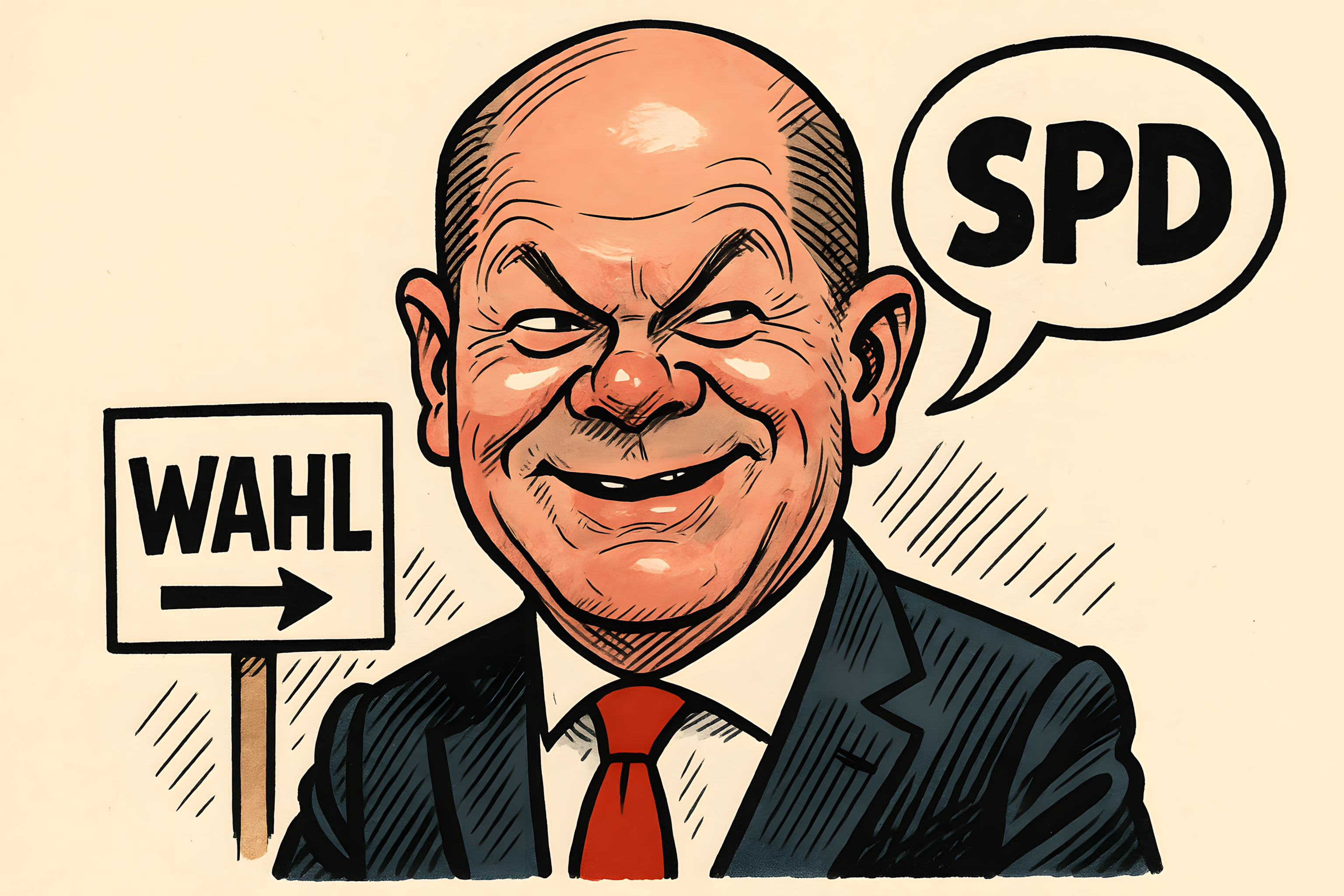 Humorvolle Karikatur des SPD-Kanzlerkandidaten Olaf Scholz von Marco Verch unter Creative Commons 2.0