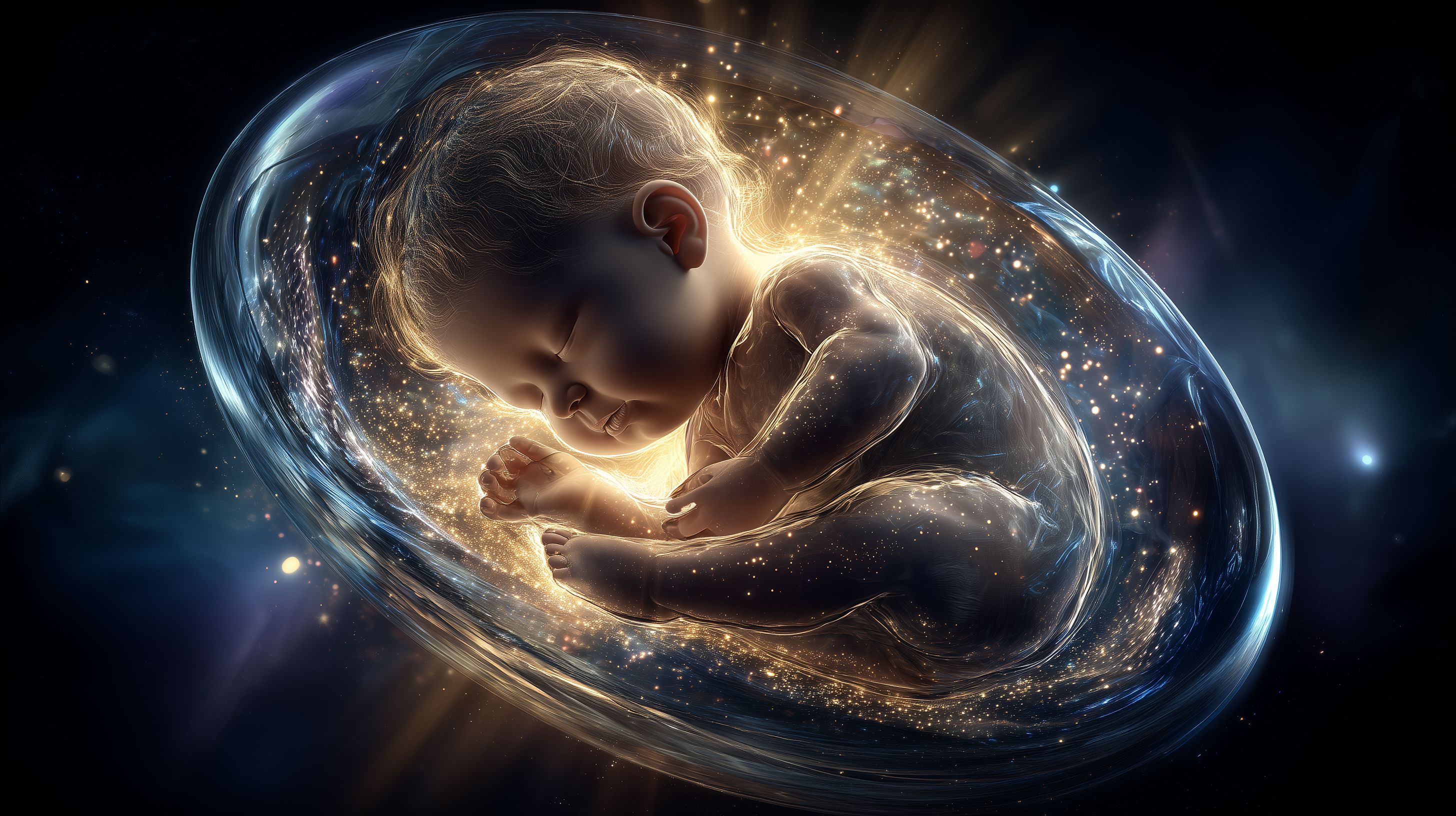 Dieses faszinierende Bild zeigt ein Neugeborenes, das friedlich in einem leuchtenden Kokon des Mutterleibs schwebt. Umgeben von funkelnden Lichteffekten, strahlt das kleine Baby eine fast mystische Aura aus. Diese kunstvolle, digital erstellte Darstellung vermittelt ein Gefühl von Magie und Transzendenz rund um den Moment der Geburt. Das Bild eignet sich hervorragend für den Einsatz in Blogs, Newslettern oder Social-Media-Beiträgen, die sich mit Themen wie Schwangerschaft, Geburt oder der spirituellen Seite des Lebensbeginns befassen. Als kostenloses Stockfoto in hoher Auflösung und unter der Creative-Commons-Lizenz kann es frei genutzt werden.