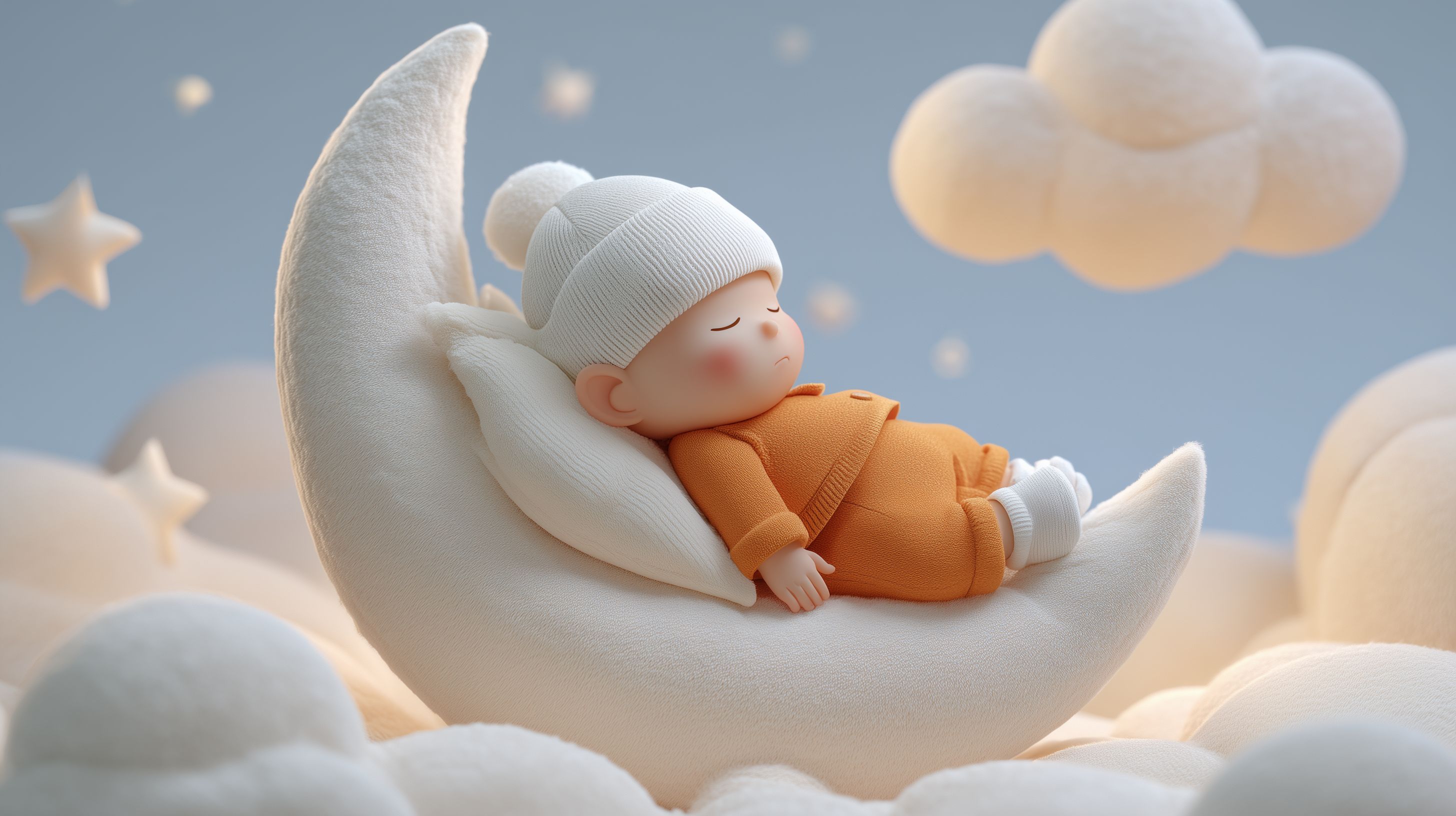 Dieses zauberhafte Stockfoto zeigt ein schlafendes Baby, das friedlich auf einem großen Plüschmond in einer märchenhaften Wolkenlandschaft ruht. Umrahmt von Sternen und Wolken, vermittelt das Bild eine beruhigende, traumhafte Atmosphäre. Mit seinen sanften Farben, der detaillierten 3D-Illustration und der liebevollen Gestaltung eignet sich das Foto perfekt für Kinderprodukte, Babywaren, Schlafrituale, Gute-Nacht-Geschichten oder andere kindgerechte Designs. Als hochauflösendes Stockfoto in hoher Qualität und unter einer Creative-Commons-Lizenz bietet es kreative Möglichkeiten für Blogs, Newsletter, Social-Media-Posts oder Werbematerial für Unternehmen aus den Bereichen Elternschaft, Kinderzimmergestaltung oder Schlafförderung.