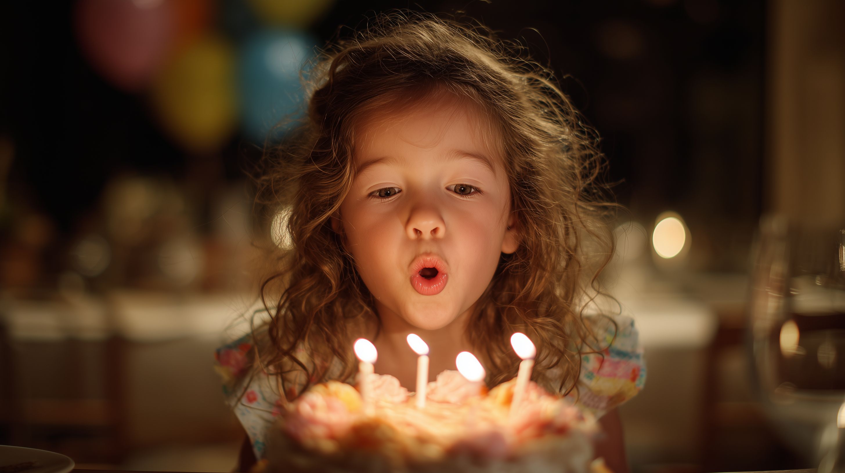 Das Foto zeigt ein lächelndes Mädchen, das eine Geburtstagstorte mit brennenden Kerzen ausbläst. Die Szene ist warm und fröhlich beleuchtet, mit einem unscharfen Hintergrund, der den Fokus auf das Mädchen und die Torte lenkt. Dieses Bild wäre ideal für die Verwendung in Geburtstagskarten, Einladungen, Social-Media-Beiträgen oder Werbematerial für Backwaren und Partyzubehör. Als kostenloses Stockfoto in hoher Auflösung und unter einer Creative-Commons-Lizenz verfügbar, kann es vielfältig eingesetzt werden.
