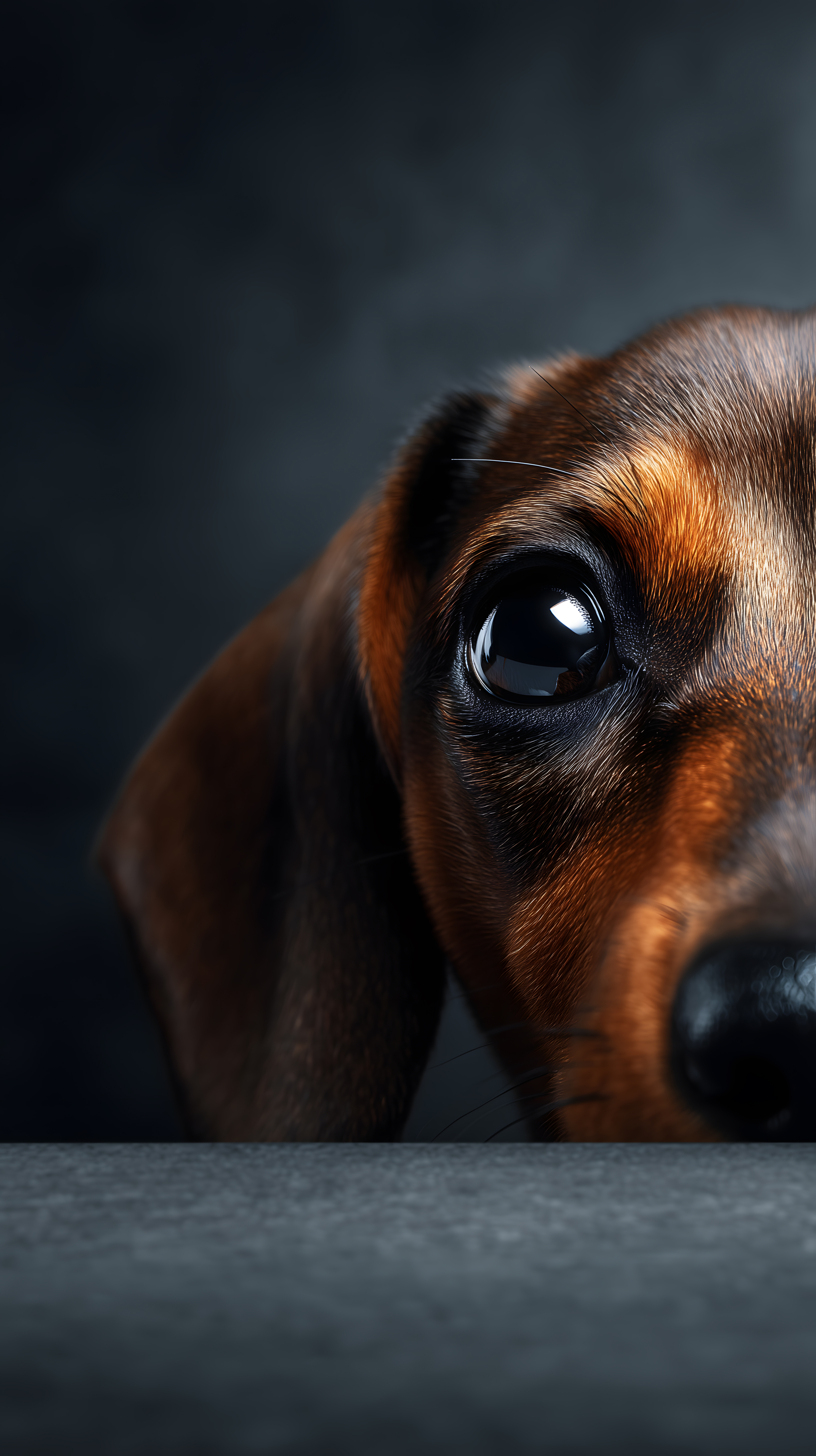 Das Bild zeigt einen aufmerksamen, neugierigen Dackel, dessen großes Auge den Betrachter direkt anzublicken scheint. Der Hund ist vor einem dunklen Hintergrund zu sehen, was den Fokus ganz auf seine Augen und sein Gesicht lenkt. Die braune Fellfärbung des Dackels hebt sich kontrastreich vom schwarzen Hintergrund ab und verleiht dem Bild eine stimmungsvolle, fast mystische Atmosphäre. Dieses hochauflösende, kostenlose Stockfoto eignet sich hervorragend für Projekte in den Bereichen Tierfotografie, Heimtiere, Werbung und Marketing sowie für Blogbeiträge, Newsletter und Social-Media-Beiträge unter der Creative-Commons-Lizenz.