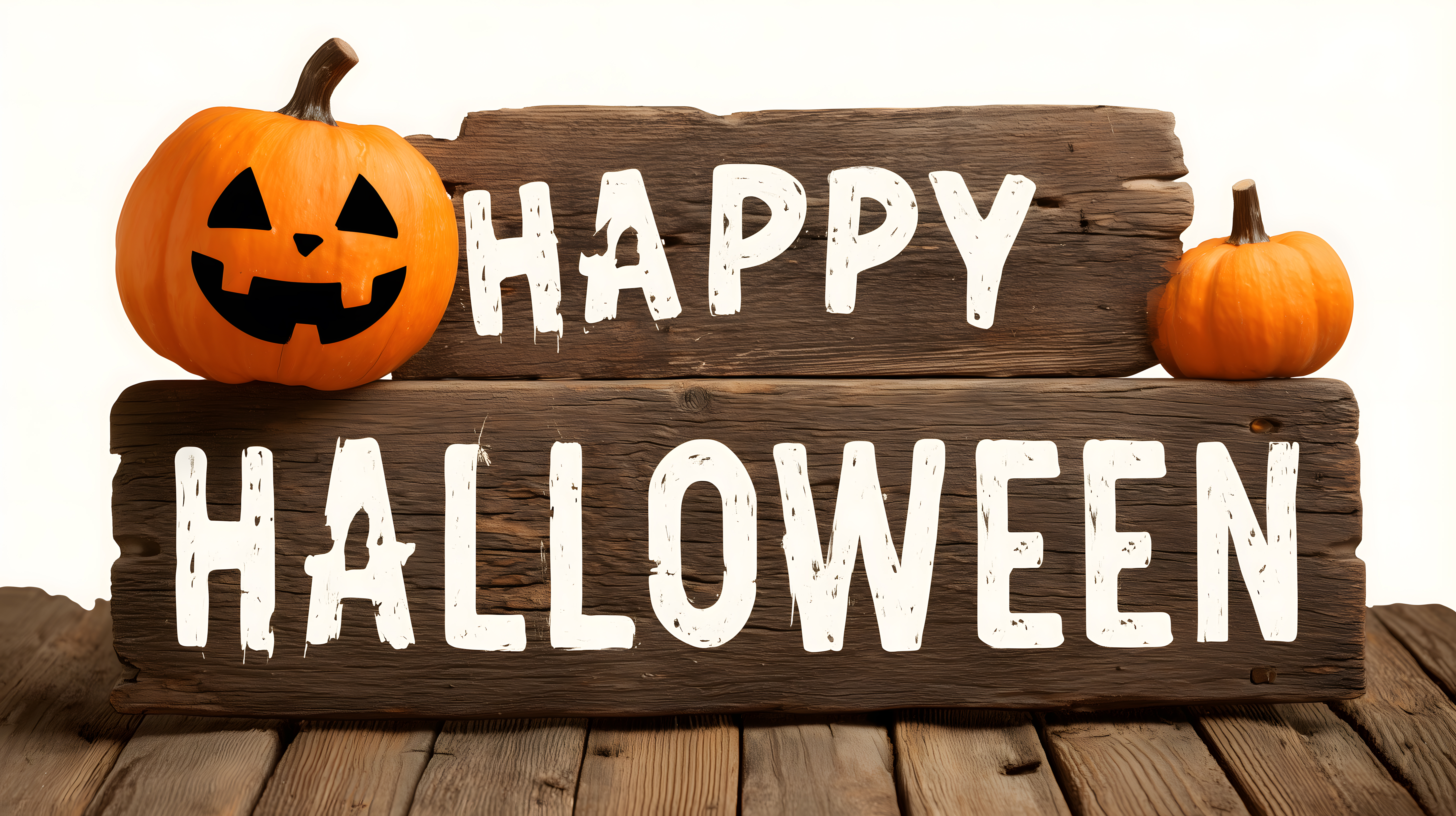 Dieses stimmungsvolle Halloween-Foto zeigt eine rustikale Szene mit zwei orangefarbenen Kürbissen und Holzschildern, die die Aufschrift 'Happy Halloween' tragen. Die Schilder sind mit weißer Farbe auf dunklem Holzgrund gestaltet, was eine gemütliche, herbstliche Atmosphäre schafft. Das Bild eignet sich hervorragend als kostenloses Stockfoto für Halloween-Dekorationen, Einladungen, Blogbeiträge oder Werbematerial in hoher Auflösung und unter Creative-Commons-Lizenz.