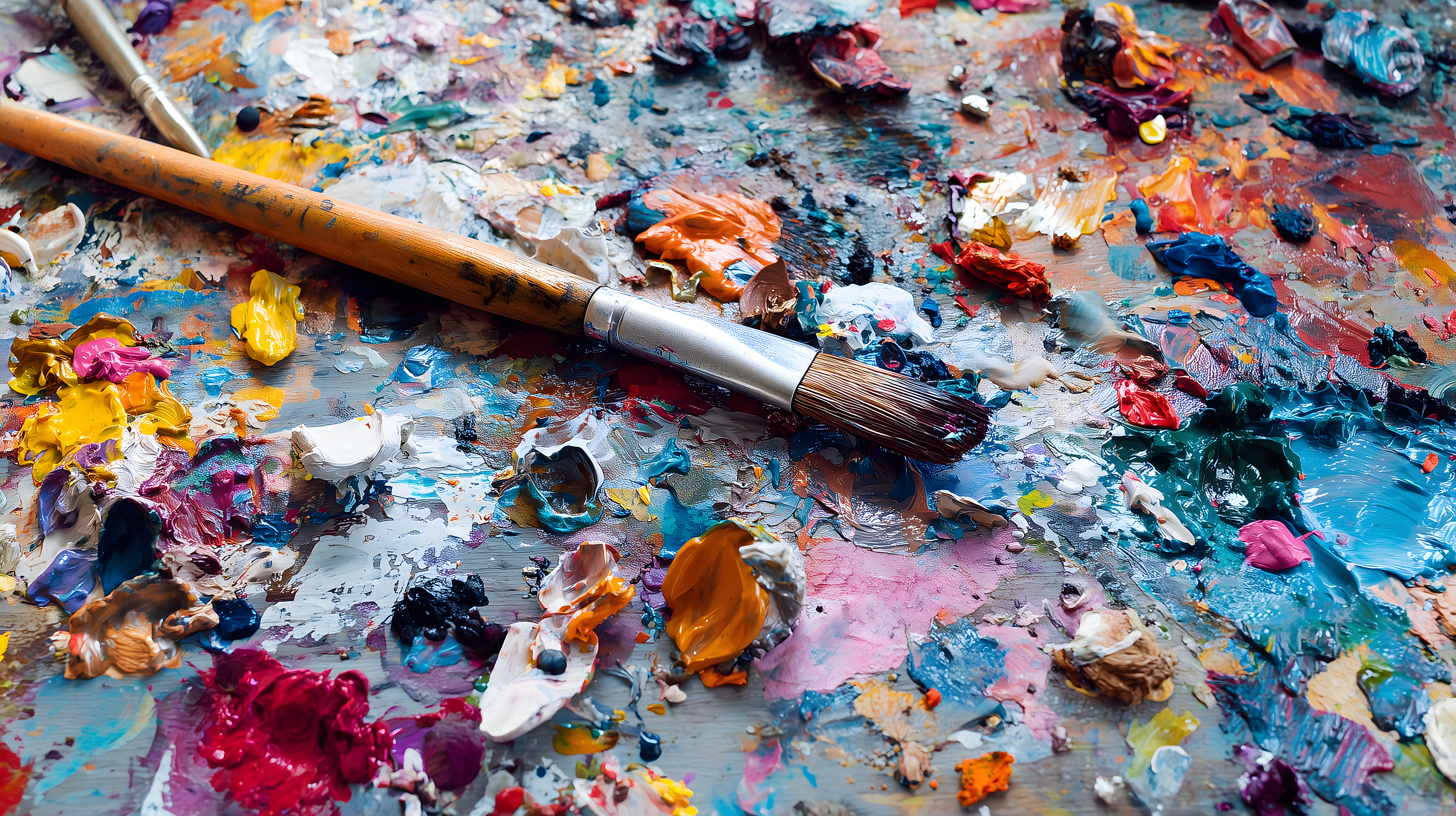 Dieses faszinierende Foto zeigt eine bunte, kreative Farbpalette mit verschiedenen Pinsel- und Acrylfarbtupfern. Die Komposition ist wild und expressiv, mit einer lebendigen Textur und einer Vielzahl an Farben, die sich zu einem kunstvollen Gesamtbild verbinden. Das Bild strahlt eine energiegeladene, künstlerische Atmosphäre aus und bietet vielfältige Einsatzmöglichkeiten, beispielsweise für Blogartikel, Werbekampagnen oder Social-Media-Posts zum Thema Kreativität, Malerei und Kunsthandwerk. Dieses kostenlose Stockfoto in hoher Auflösung unter Creative-Commons-Lizenz ist ideal für Ihre nächste kreative Projektplanung.