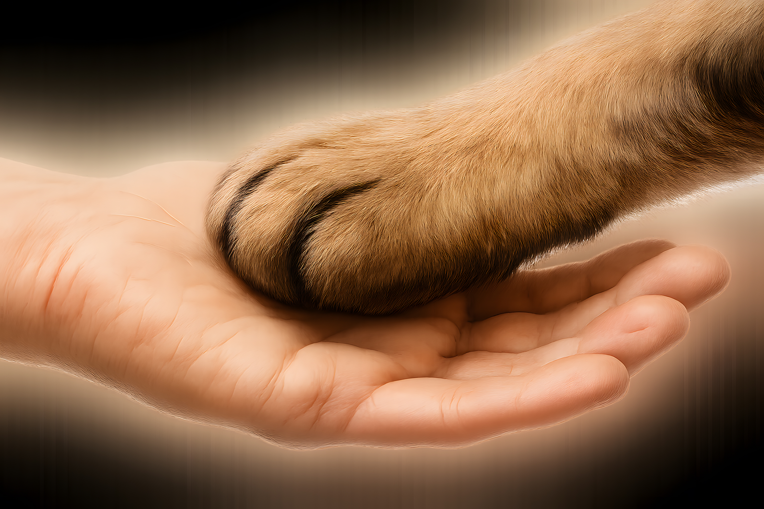 Das Bild zeigt eine sanfte Verbindung zwischen einer Menschenhand und einer Tierpfote. Die Aufnahme ist sehr nah und konzentriert sich auf den Kontaktpunkt, wodurch die Textur des Fells und der Haut besonders betont werden. Der Hintergrund ist unscharf gehalten, um den Fokus auf die Geste der Fürsorge und des Vertrauens zu lenken. Das Bild vermittelt ein Gefühl von Verbundenheit und Mitgefühl zwischen Mensch und Tier. Es eignet sich hervorragend als Konzeptfoto für Themen wie Tierliebe, Schutz, Verantwortung und die Beziehung zwischen Mensch und Natur. Das hochauflösende Stockfoto ist unter einer Creative-Commons-Lizenz frei verwendbar.