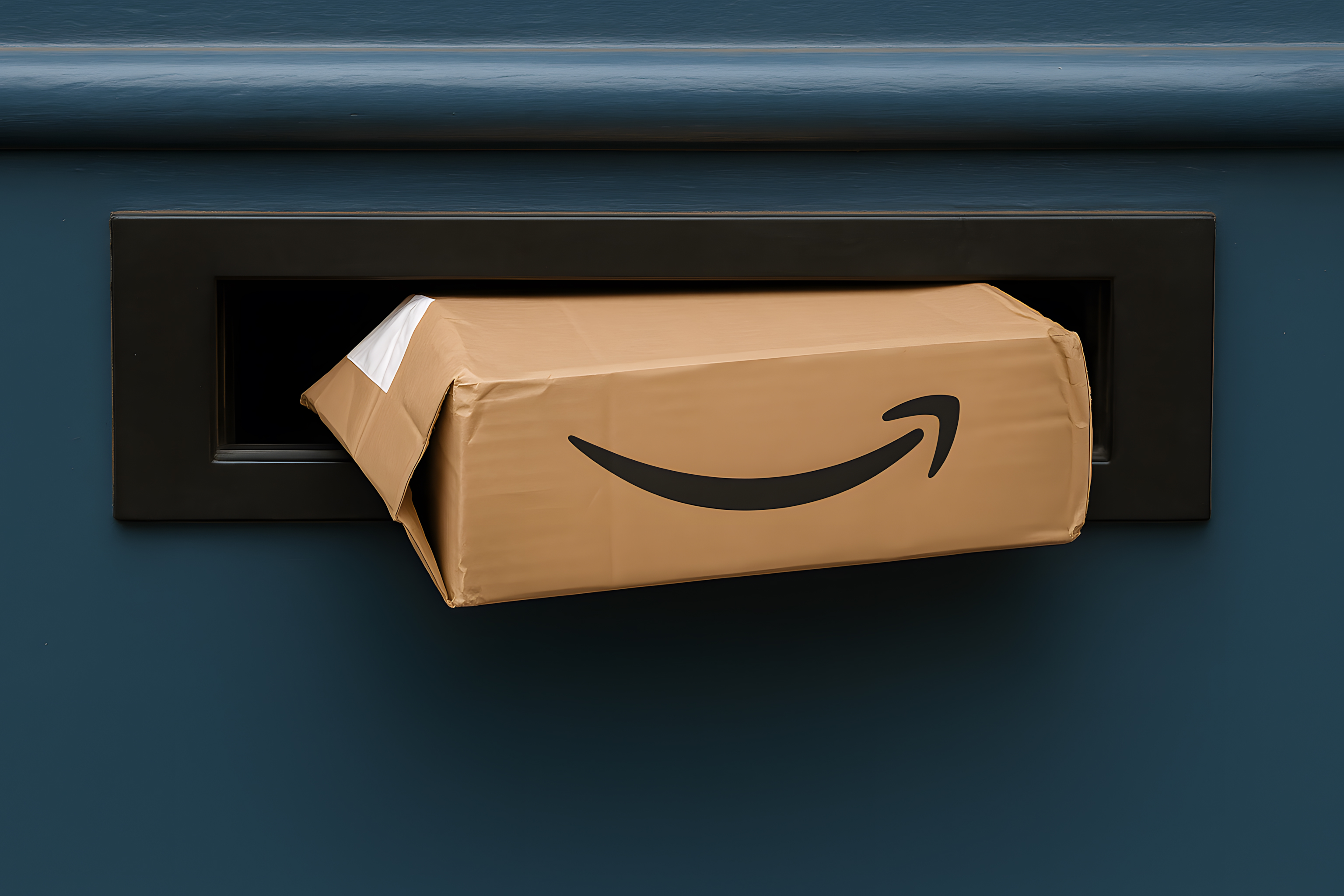 Das Bild zeigt ein braunes Amazon-Paket, das in einen schmalen, grünen Briefkasten eingeklemmt ist. Der Karton ragt teilweise aus dem Schlitz heraus und wirkt etwas verbeult. Der Kontrast zwischen dem kräftigen Grün des Briefkastens und der braunen Verpackung sowie der dezente Schattenwurf schaffen eine minimalistisch-elegante Ästhetik. Dieses Stockfoto eignet sich für Blogbeiträge, Newsletter oder Social-Media-Posts rund um das Thema Online-Shopping, E-Commerce-Logistik und Kundenservice. Es ist in hoher Auflösung und unter einer Creative-Commons-Lizenz frei verwendbar.