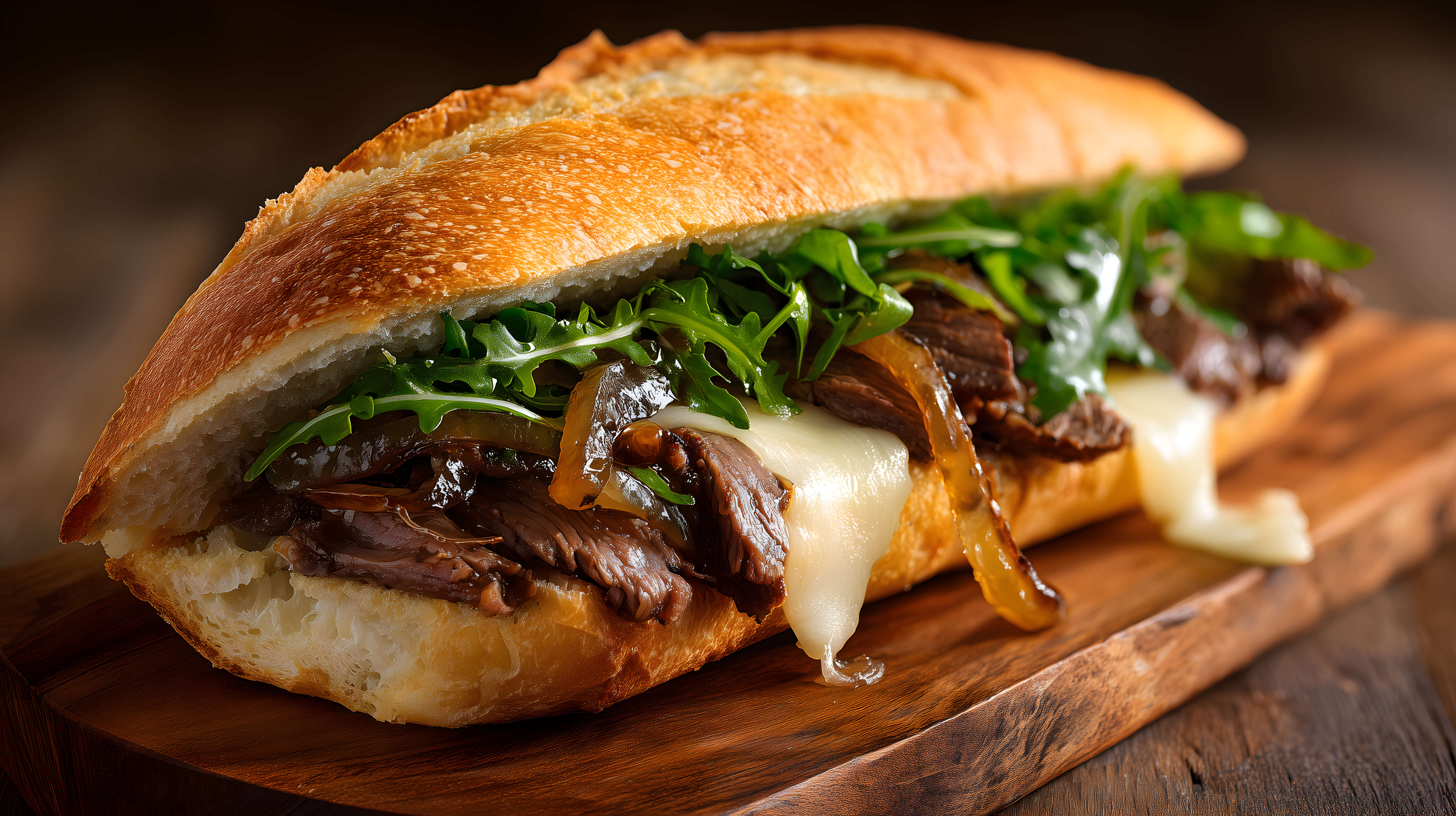 Das Foto zeigt ein appetitliches Beef-Sandwich auf einem rustikalen Holzbrett. Das Sandwich ist mit zarten Rinderstücken, Käse und frischen Rucola-Blättern belegt, was eine leckere und ausgewogene Kombination ergibt. Die warmen Farbtöne und die natürliche Optik des Holzbretts verleihen dem Bild eine gemütliche und einladende Atmosphäre. Dieses hochwertige Stockfoto in hoher Auflösung eignet sich perfekt für Blogs, Newsletter, Social-Media-Beiträge oder Werbematerialien rund um das Thema Gastronomie und Kulinarik. Es steht unter einer Creative-Commons-Lizenz und kann daher kostenlos verwendet werden.