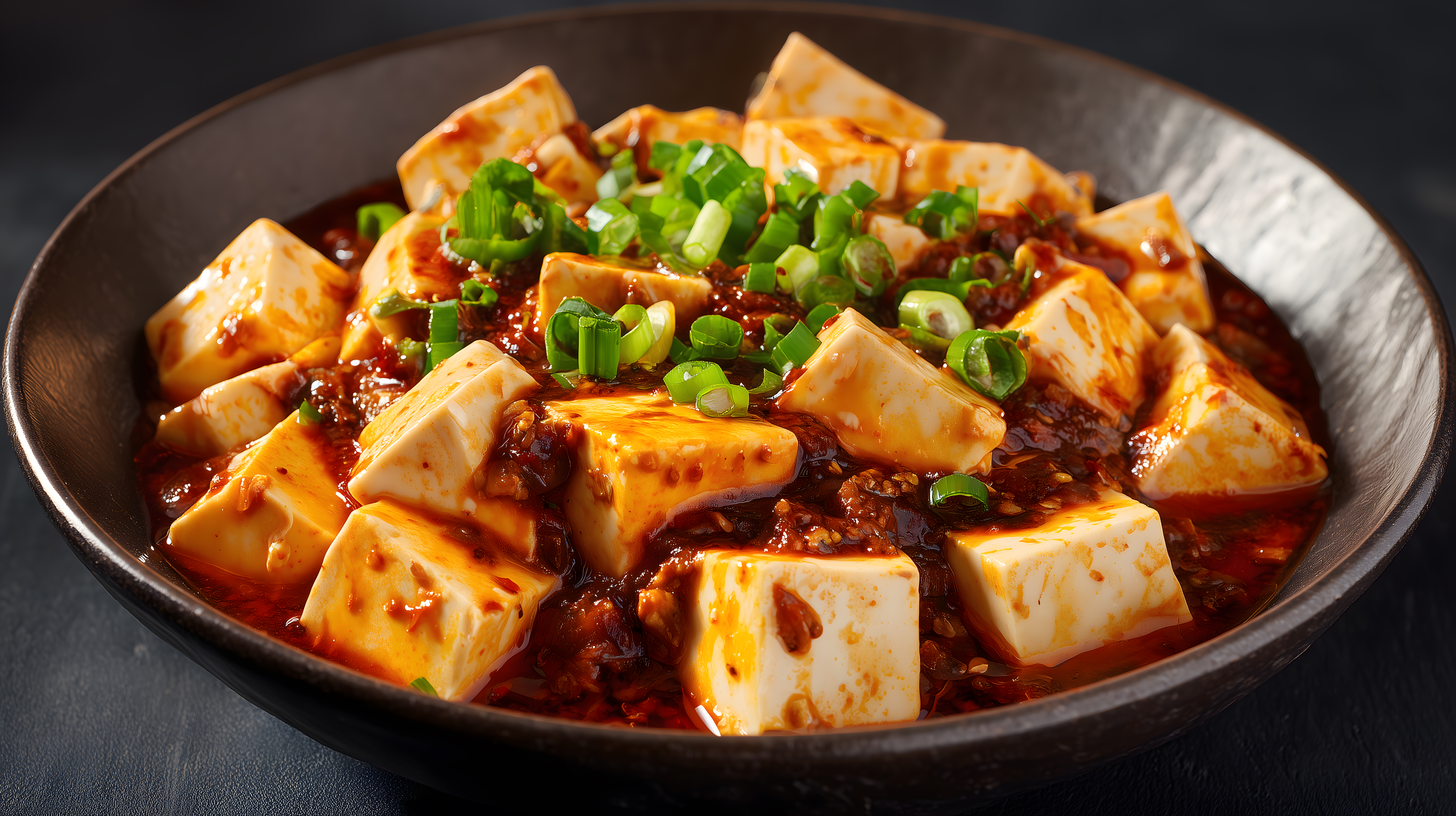 Dieses Foto zeigt einen würzigen Tofu-Eintopf mit einer intensiven Chili-Sauce und frischen Frühlingszwiebeln. Die kräftig rote Sauce und die grünen Zwiebelringe bilden einen farbigen Kontrast auf dem dunklen Tellerboden. Das Gericht strahlt Wärme und Geschmack aus und ist perfekt als Hauptspeise für eine asiatische Mahlzeit geeignet. Dieses hochauflösende Stockfoto eignet sich hervorragend für den Einsatz in Blogs, Newslettern oder Social-Media-Beiträgen rund um vegane oder vegetarische Gerichte, asiatische Küche oder scharfe Speisen. Das Bild ist unter einer Creative-Commons-Lizenz frei nutzbar.