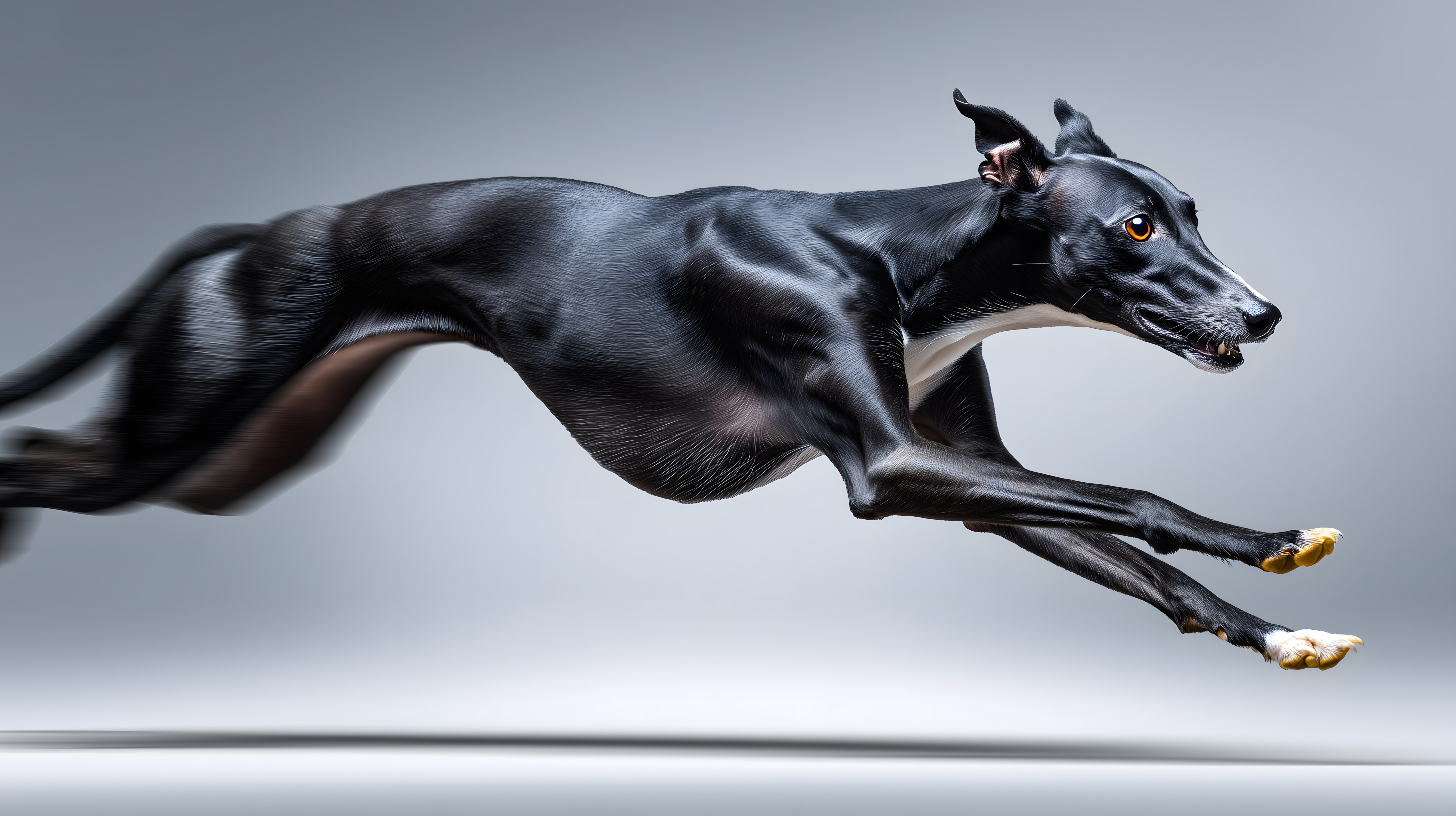 Dieses Foto zeigt einen schwarzen Windhund in vollem Sprint. Der Hund ist in einer dynamischen Pose abgebildet, mit Bewegungsunschärfe, die den Eindruck von hoher Geschwindigkeit und Energie vermittelt. Der Hund ist konzentriert und entschlossen, die Zielline zu erreichen. Dieses fesselnde Bild eignet sich hervorragend für die Verwendung in Blogbeiträgen, Newslettern oder Social-Media-Kampagnen, die Themen wie Sport, Fitness, Haustiere oder Fotografie behandeln. Als kostenloses Stockfoto in hoher Auflösung unter einer Creative-Commons-Lizenz ist es für eine Vielzahl von Projekten einsetzbar.