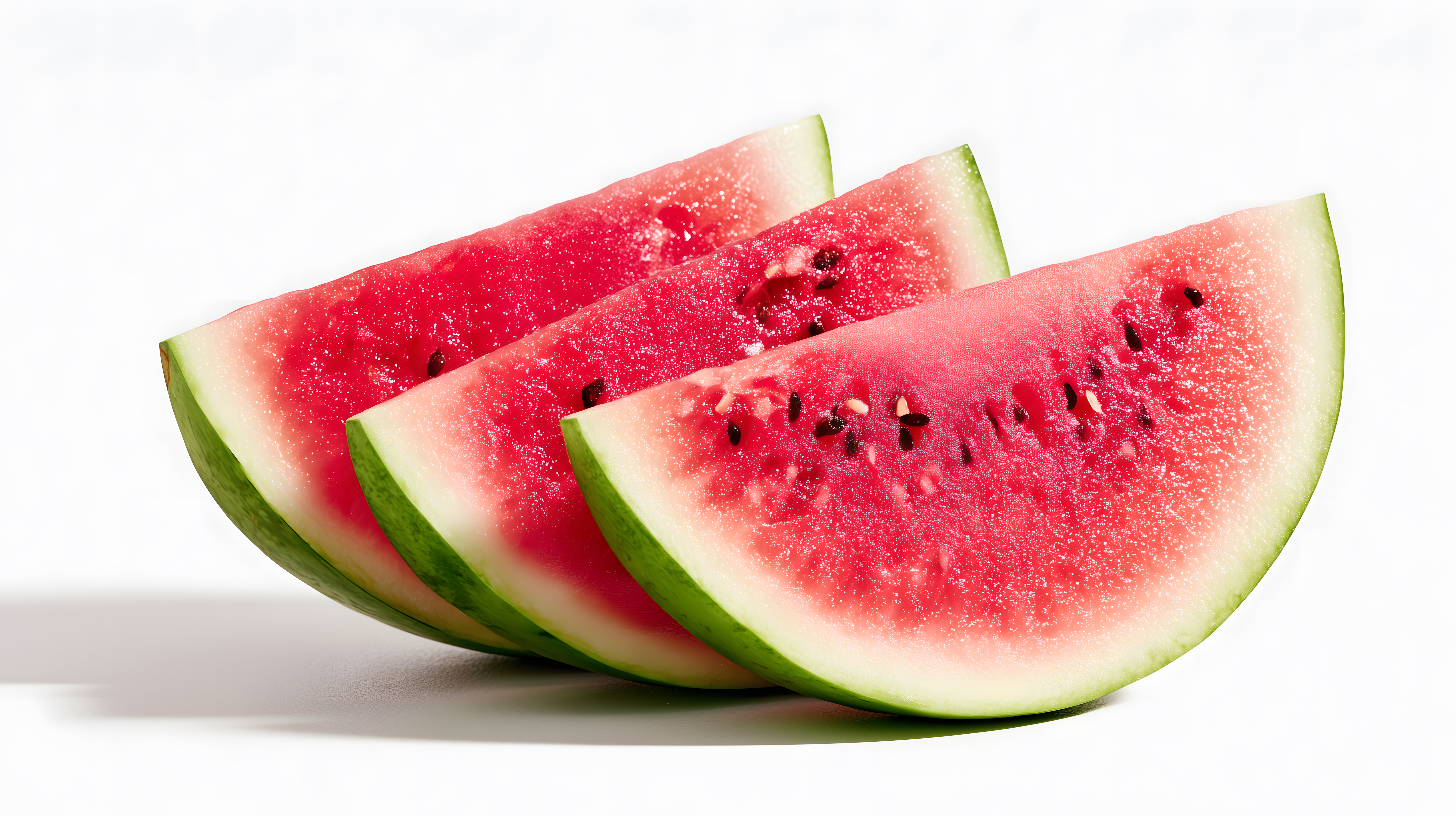 Dieses Foto zeigt mehrere frisch aufgeschnittene Scheiben einer saftigen, roten Wassermelone. Die Melonenstücke sind auf einem weißen Hintergrund angeordnet und zeigen die charakteristischen dunklen Kerne der Frucht. Die Schnittkanten der Melone sind deutlich sichtbar, was den frischen Eindruck verstärkt. Die kräftig rote Farbe des Fruchtfleisches und die grünen Schalen kontrastieren schön miteinander. Dieses hochauflösende Bild eignet sich hervorragend als kostenloses Stock-Foto für Blogs, Websites, Social-Media-Kanäle oder Werbekampagnen rund um Sommer, Erfrischung und gesunde Ernährung. Es steht unter der Creative-Commons-Lizenz zur freien Nutzung zur Verfügung.