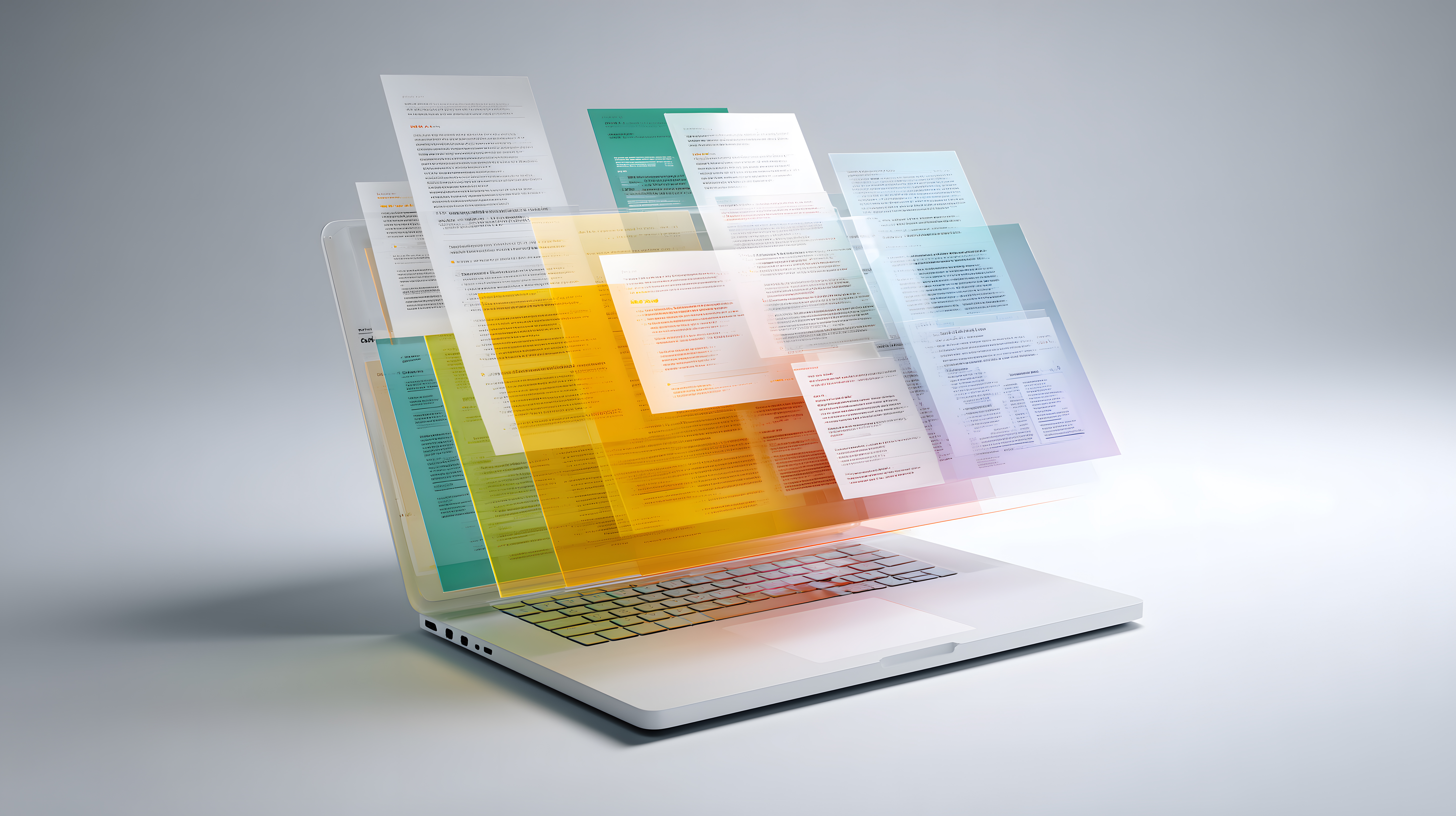 Das Bild zeigt einen Laptop-Bildschirm mit verschiedenen farbigen digitalen Dokumenten. Es vermittelt den Eindruck eines modernen, digitalen Dokumentenmanagements in einem geschäftlichen Umfeld. Die Anordnung der Dokumente in unterschiedlichen Farbschattierungen verleiht dem Bild einen aufgeräumten und strukturierten Charakter. Dieses Stockfoto eignet sich hervorragend für Blogs, Newsletter, Werbeanzeigen oder Social-Media-Beiträge rund um Themen wie Büroorganisation, Effizienzsteigerung, Digitalisierung und moderne Arbeitsprozesse. Die hochauflösende Datei ist unter einer Creative-Commons-Lizenz frei nutzbar.
