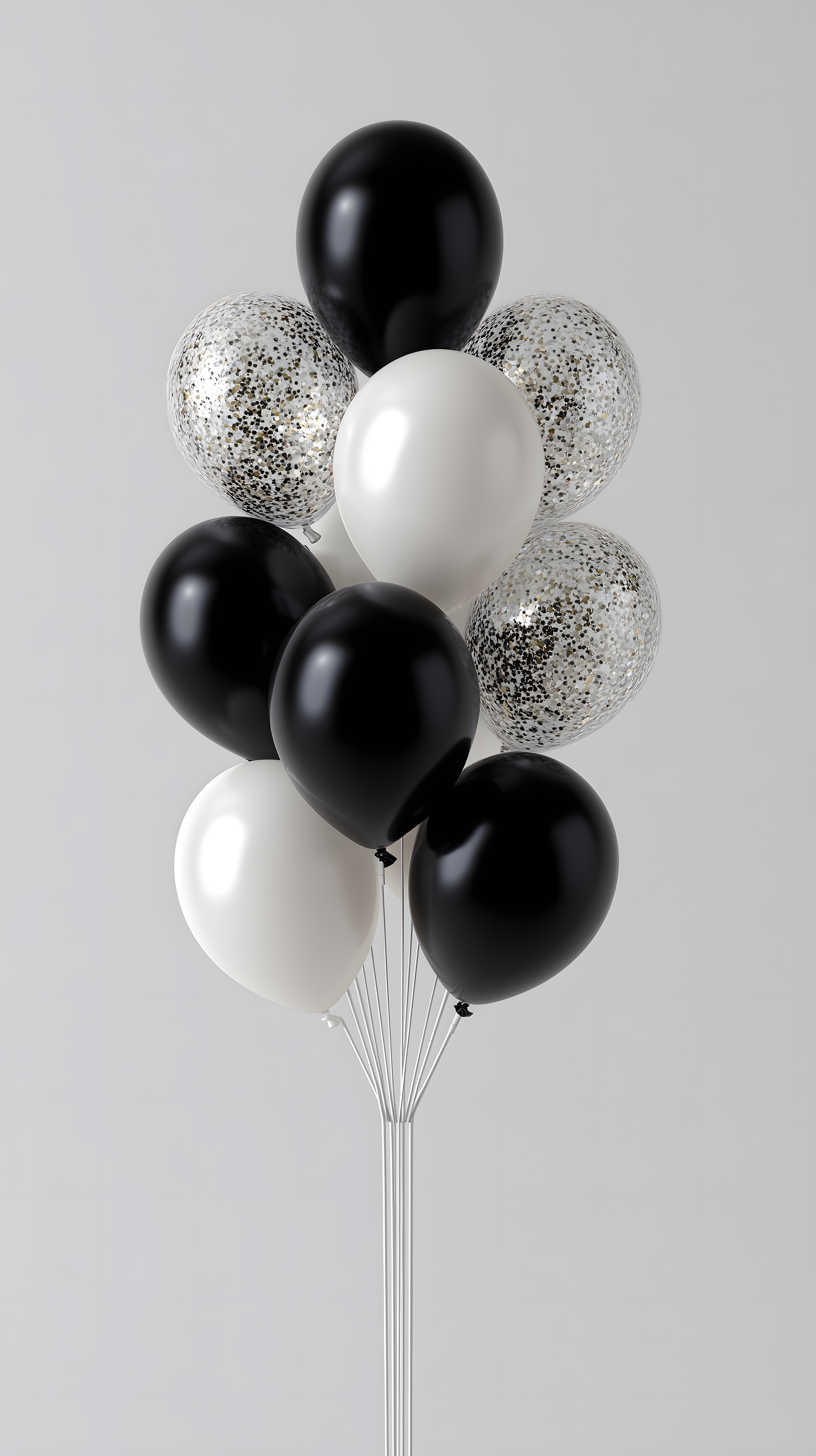 Dieses elegante Schwarz-Weiß-Ballonbouquet mit Glitzereffekt ist ein vielseitig einsetzbares Stockfoto für verschiedene Anwendungen. Die Komposition aus schwarzen, weißen und silbrig glitzernden Luftballons in unterschiedlichen Größen schafft einen stimmungsvollen, modernen Look, der sich ideal für Werbung, Social-Media-Beiträge, Blogbeiträge oder Grafikdesign eignet. Das hochauflösende Bild ist kostenlos unter Creative-Commons-Lizenz verfügbar und kann frei genutzt werden.
