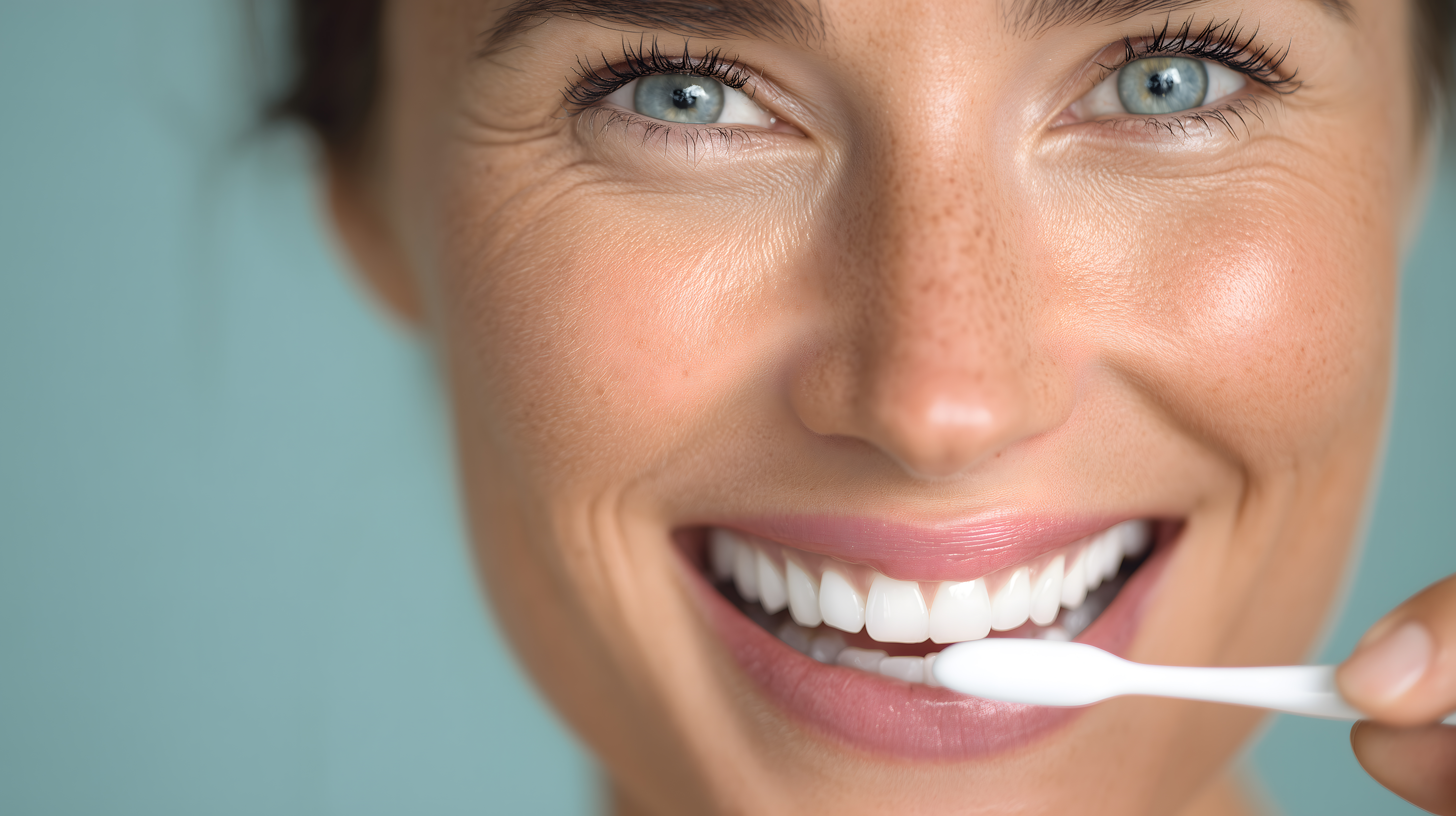 Das Foto zeigt das Porträt einer lächelnden Frau, die sich die Zähne putzt. Ihr Gesichtsausdruck strahlt Freundlichkeit und Zufriedenheit aus. Die Nahaufnahme konzentriert sich auf ihren Mund mit den weißen, perfekt gereinigten Zähnen. Das Bild vermittelt ein Gefühl von Selbstfürsorge, Gesundheit und Wellness. Es eignet sich hervorragend als kostenloses Stockfoto für Beiträge zu Themen wie Zahnpflege, Schönheit, Lifestyle oder Gesundheit in Blogs, Websites, Newslettern und Social-Media-Kanälen. Die hochauflösende Datei steht unter einer Creative-Commons-Lizenz zur Verfügung.