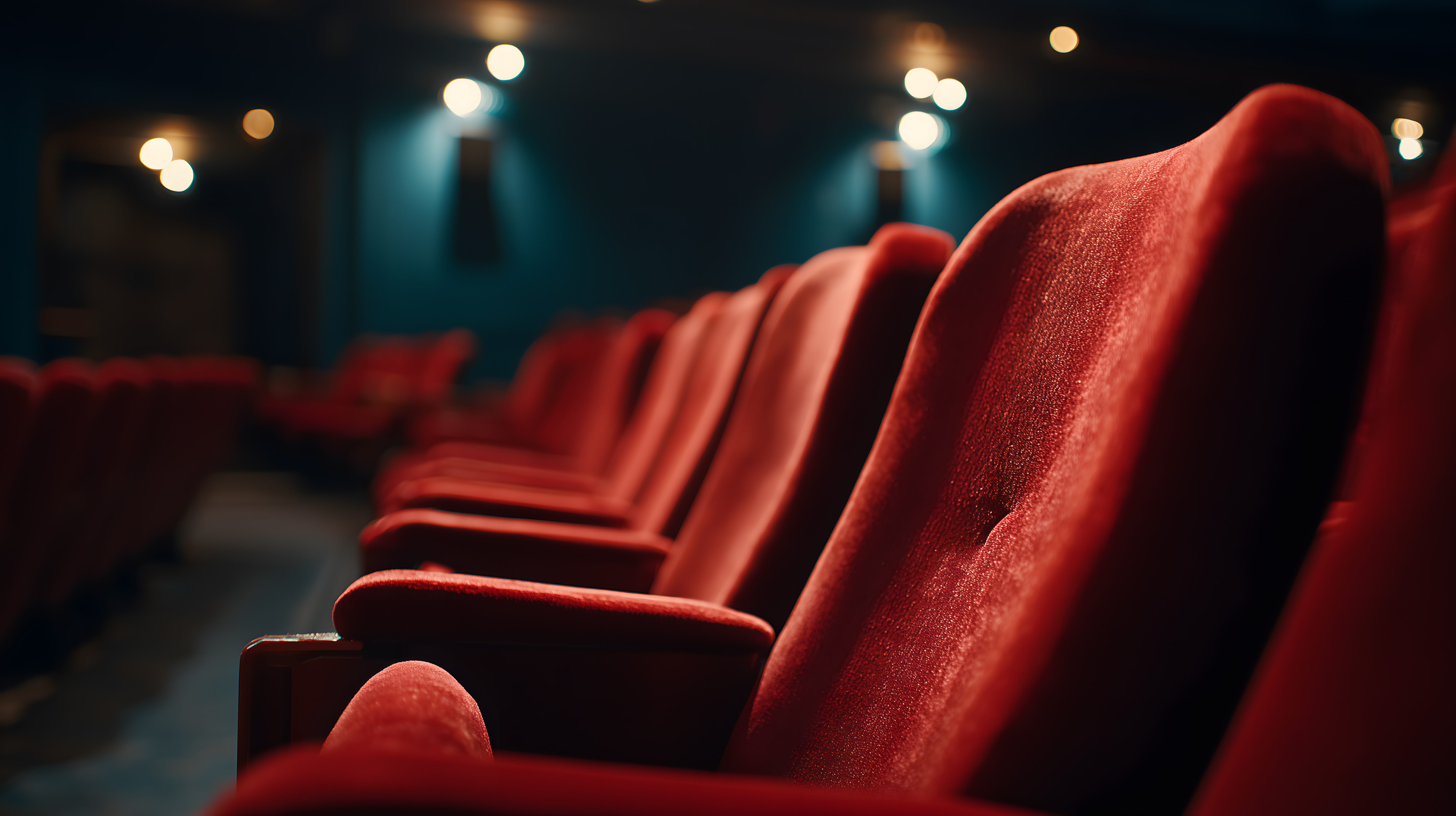 Das Foto zeigt eine Reihe roter Samtsessel in einem Kinosaal oder Theatersaal. Der Fokus liegt auf einem einzelnen Sitz, der scharf abgebildet ist, während die anderen Sitzplätze verschwommen im Hintergrund erkennbar sind. Die Beleuchtung ist gedämpft, was eine gemütliche und intime Atmosphäre vermittelt. Die roten Samtsessel stehen kontrastreich zur dunklen Umgebung und erzeugen eine warme, einladende Stimmung. Dieses Stockfoto eignet sich hervorragend für Beiträge zum Thema Unterhaltung, Kino, Theater oder Veranstaltungsorte in Blogs, Newslettern oder sozialen Medien. Es ist in hoher Auflösung verfügbar und unter einer Creative-Commons-Lizenz für vielfältige Verwendungszwecke freigegeben.