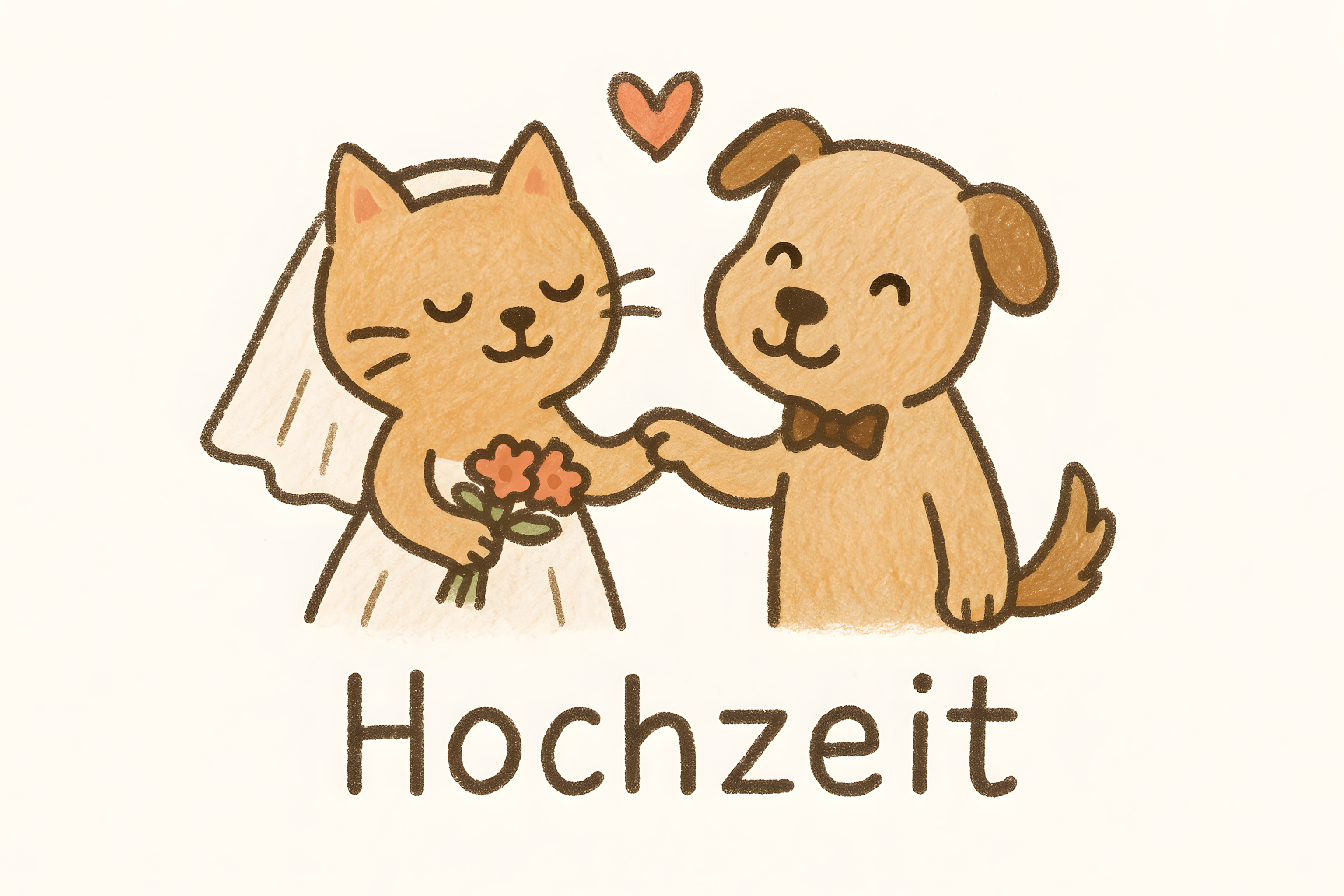 Dieses charmante Cartoon-Bild zeigt zwei niedliche Tiere, eine Katze und einen Hund, die eine Hochzeit feiern. Sie halten Händchen und die Katze hält einen Strauß bunter Blumen. Über ihnen schwebt ein Herz, das ihre Verbundenheit symbolisiert. Mit den warmen Pastelltönen und dem süßen Zeichenstil schafft es eine fröhliche, romantische Stimmung. Das Bild eignet sich hervorragend als kostenloses Stockfoto für Hochzeitsanzeigen, Grußkarten, Blogs oder Social-Media-Posts rund um das Thema Liebe und Romantik. Es ist in hoher Auflösung und unter einer Creative-Commons-Lizenz verfügbar.