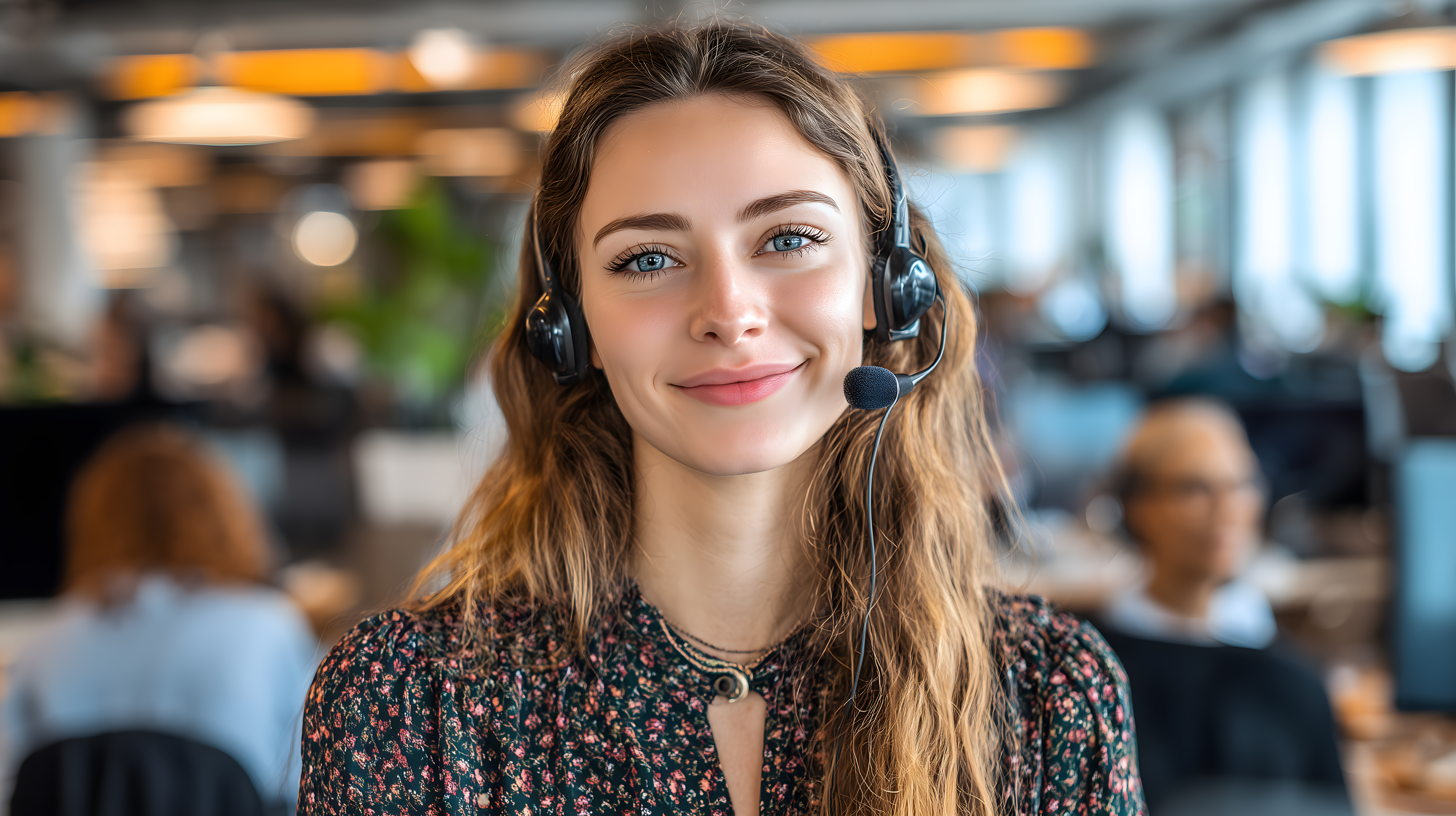 Das Bild zeigt eine lächelnde Kundenservice-Mitarbeiterin in einem modernen Büroumfeld. Sie trägt ein Headset und schaut direkt in die Kamera, was auf ihre professionelle und freundliche Herangehensweise hinweist. Das Foto eignet sich hervorragend für den Einsatz in Blogbeiträgen, Newslettern, Werbematerialien oder Social-Media-Kanälen, die sich mit Kundenservice, Vertrieb oder Beratung befassen. Als kostenloses Stockfoto in hoher Auflösung und unter Creative-Commons-Lizenz kann es frei genutzt werden.