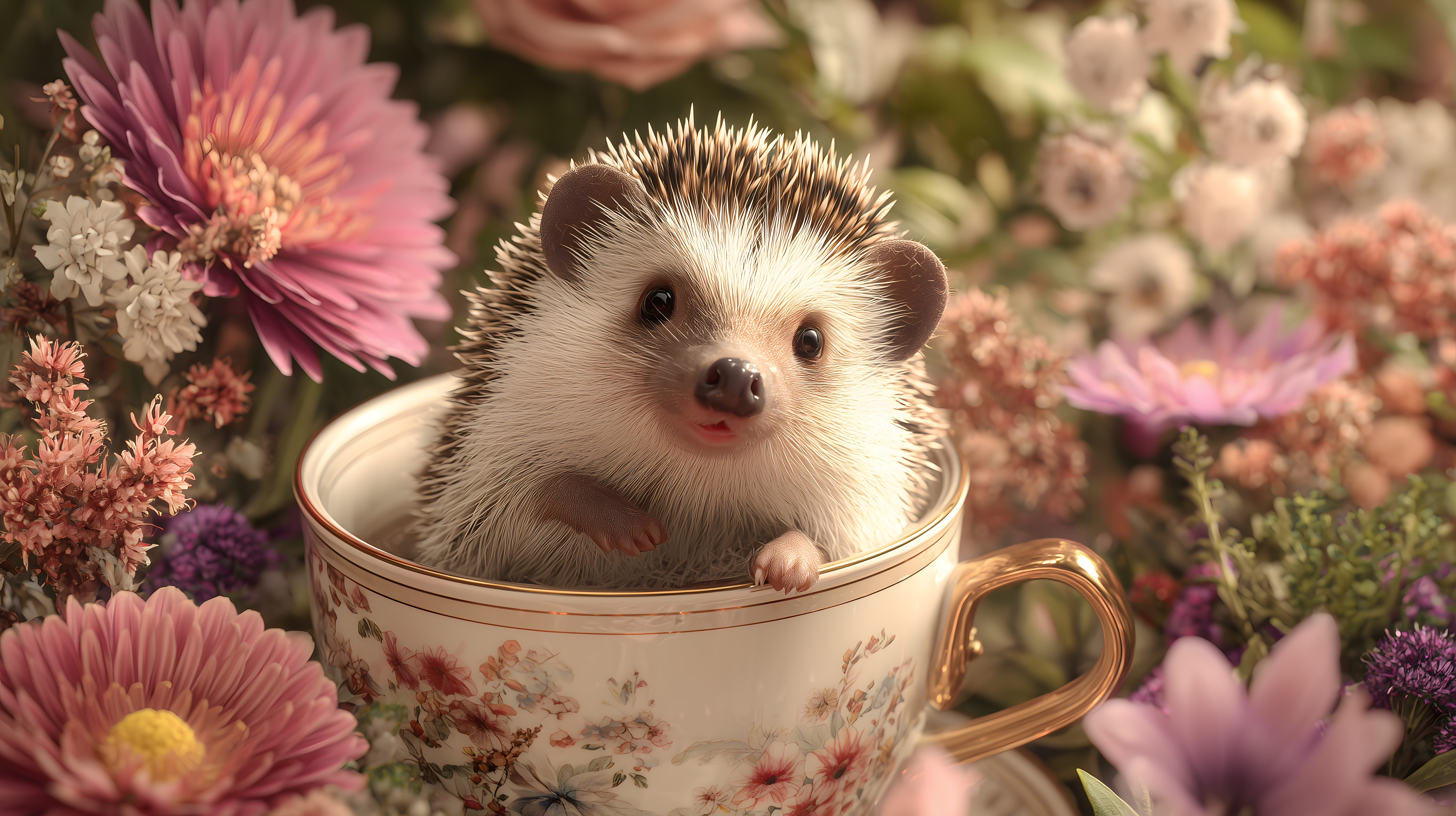 Dieses bezaubernde Foto zeigt einen niedlichen Igel, der friedlich in einer bunten Tasse sitzt, umgeben von einer farbenfrohen Blumenwiese. Die Perspektive ist nah und persönlich, wodurch die süßen Details des Igels wie seine glänzenden Augen und sein weiches Fell besonders hervorgehoben werden. Die warmen, pastelligen Farben der Blumen schaffen eine einladende, gemütliche Atmosphäre. Dieses Bild wäre perfekt für den Einsatz in Blogs, Newslettern, Social-Media-Posts oder Werbekampagnen, die eine natürliche, sommerliche Stimmung vermitteln möchten. Als kostenloses Stockfoto in hoher Auflösung und unter einer Creative-Commons-Lizenz ist es vielseitig einsetzbar.