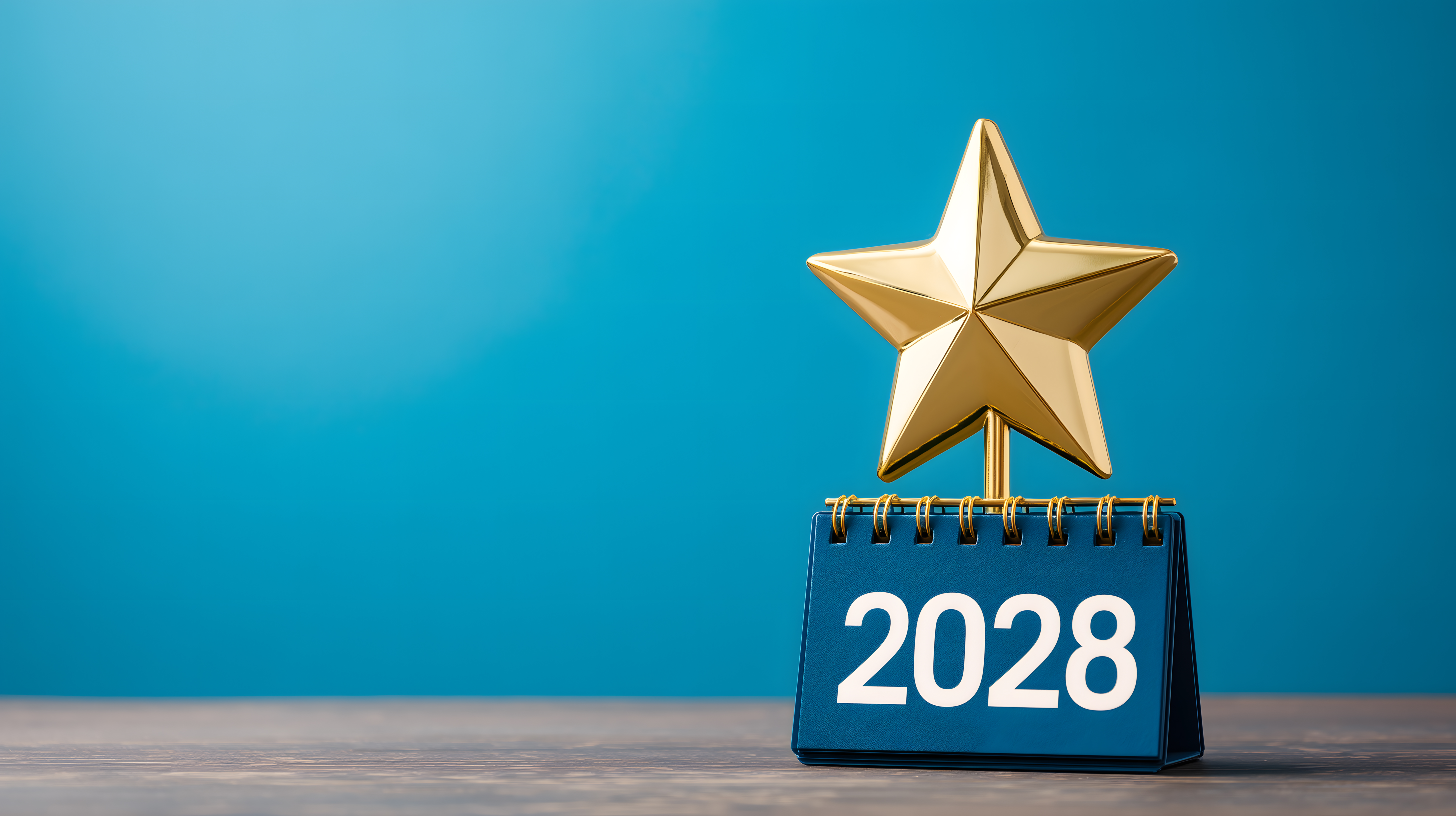 Dieses Stockfoto zeigt einen glänzenden, goldenen Stern-Pokal, der auf einem blauen Wandkalender für das Jahr 2028 platziert ist. Das Bild vermittelt ein Gefühl von Erfolg, Leistung und Ehrgeiz. Der Stern als Symbol für Auszeichnung und Anerkennung stellt einen kreativen Kontrast zum schlichten, minimalistischen Design des Kalenders dar. Das Foto eignet sich hervorragend für die Verwendung in Blogbeiträgen, Werbekampagnen oder Newslettern zum Thema Zukunftsplanung, Unternehmenserfolg oder Leistungsmotivation. Das hochauflösende Bild steht unter einer Creative-Commons-Lizenz zur freien Nutzung zur Verfügung.
