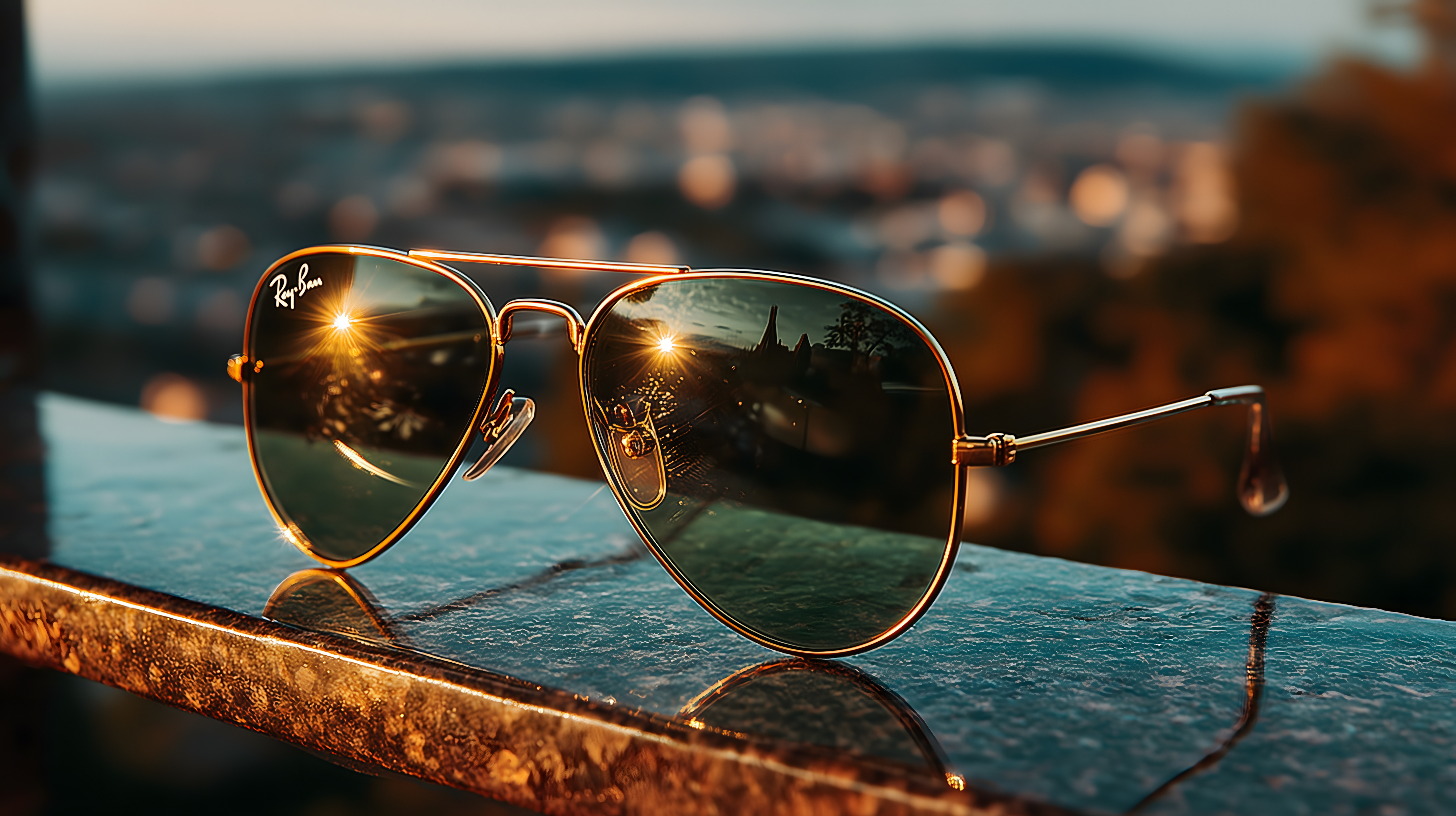 Das Bild zeigt eine elegant platzierte Ray-Ban-Sonnenbrille in Aviator-Optik vor einem verschwommenen Hintergrund einer Stadtansicht im Abendlicht. Die Brille reflektiert die Lichter und Gebäude der Stadt, wodurch eine stimmungsvolle und atmosphärische Szene entsteht. Das Foto eignet sich hervorragend für den Einsatz in Blogs, Newslettern, Social-Media-Beiträgen oder Werbekampagnen rund um Themen wie Mode, Lifestyle, Reisen oder Produktpräsentationen. Als hochwertiges, kostenloses Stockfoto unter Creative-Commons-Lizenz bietet es viele Möglichkeiten für kreative Gestaltungen.