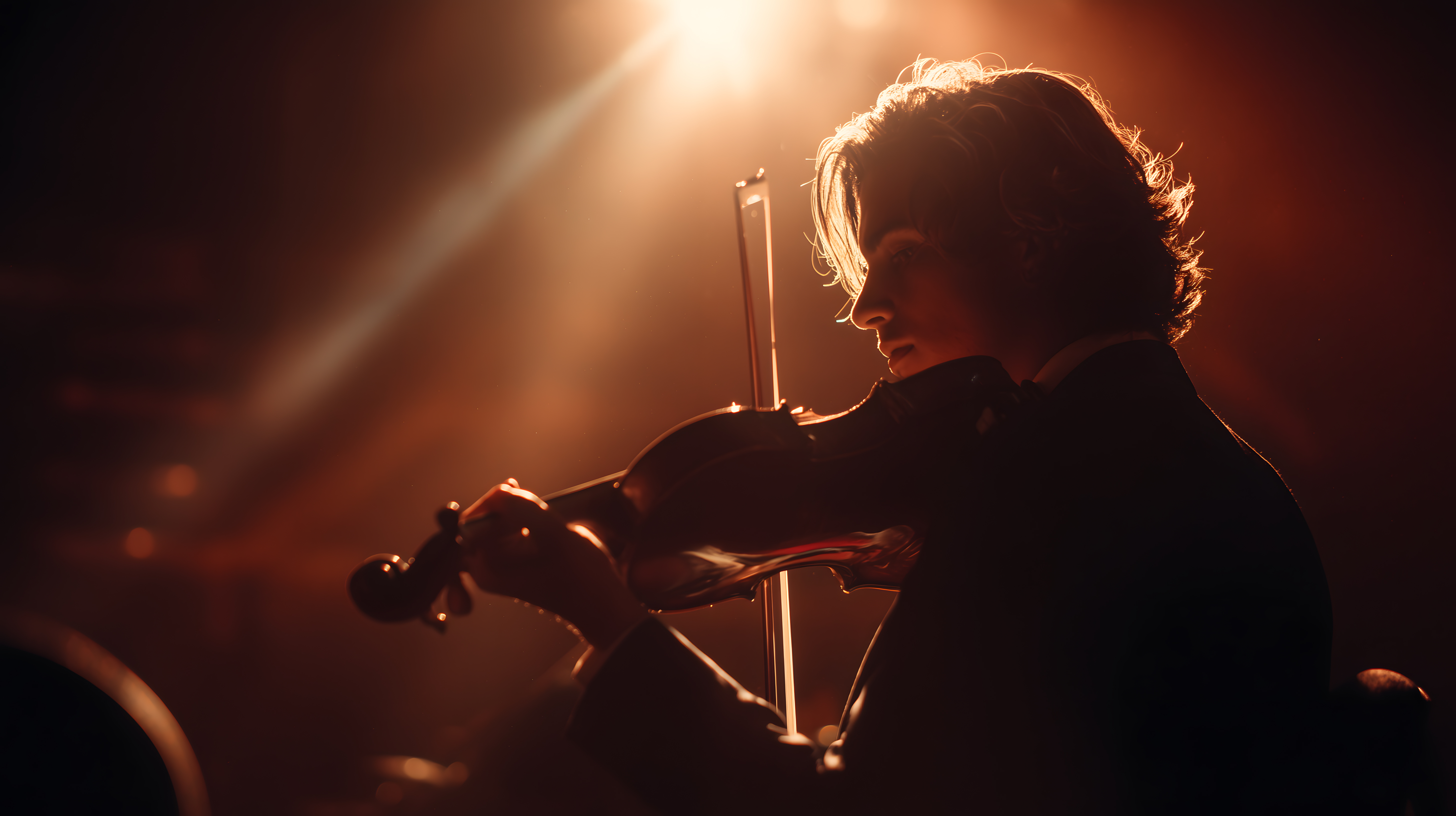 Dieses fesselnde Foto zeigt einen Musiker, der eine dramatisch beleuchtete Geige auf der Bühne spielt. Der Künstler ist in Schatten gehüllt, während ein Scheinwerfer sein Instrument und Gesicht in ein warmes, oranges Licht taucht. Die Komposition und Beleuchtung erzeugen eine intensive, leidenschaftliche Stimmung, die den Betrachter in den Bann zieht. Dieses hochauflösende Stockfoto eignet sich hervorragend für Beiträge in Blogs, Newslettern oder Social-Media-Kanälen, die sich mit Musik, Kunst und Kultur befassen. Es ist unter einer Creative-Commons-Lizenz verfügbar und kann daher kostenlos genutzt werden.