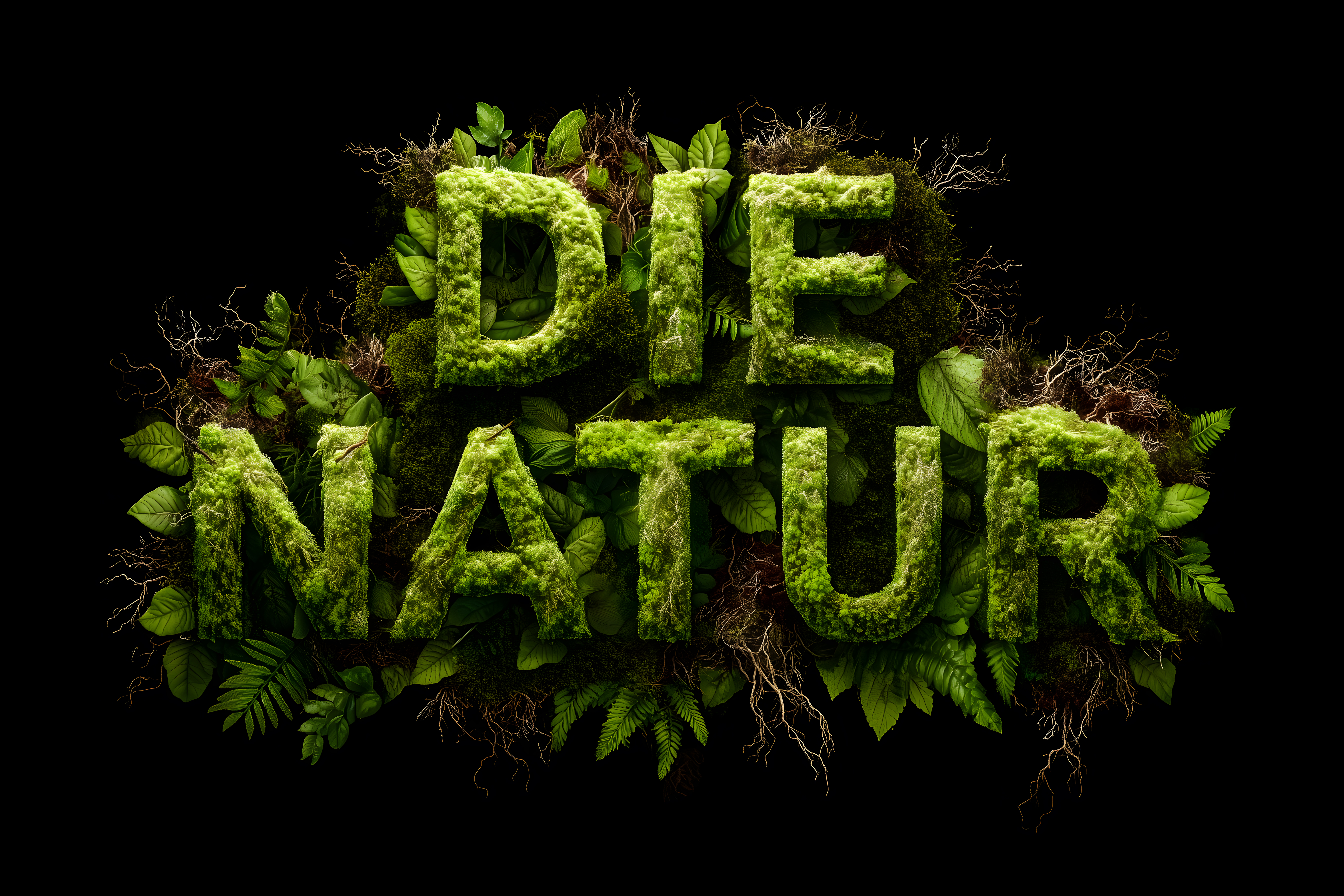 Dieses Foto zeigt einen dekorativen Schriftzug, der vollständig aus natürlichen Materialien wie Blättern, Moos und Wurzeln gestaltet ist. Die grüne Farbpalette und die organischen Formen verleihen dem Motiv eine frische, natürliche Ausstrahlung. Das Bild eignet sich hervorragend als Hintergrundmotiv für Blogs, Newsletter oder Social-Media-Beiträge mit Themen rund um Ökologie, Nachhaltigkeit oder Umweltschutz. Das hochauflösende Stockfoto ist kostenfrei unter der Creative-Commons-Lizenz verwendbar.