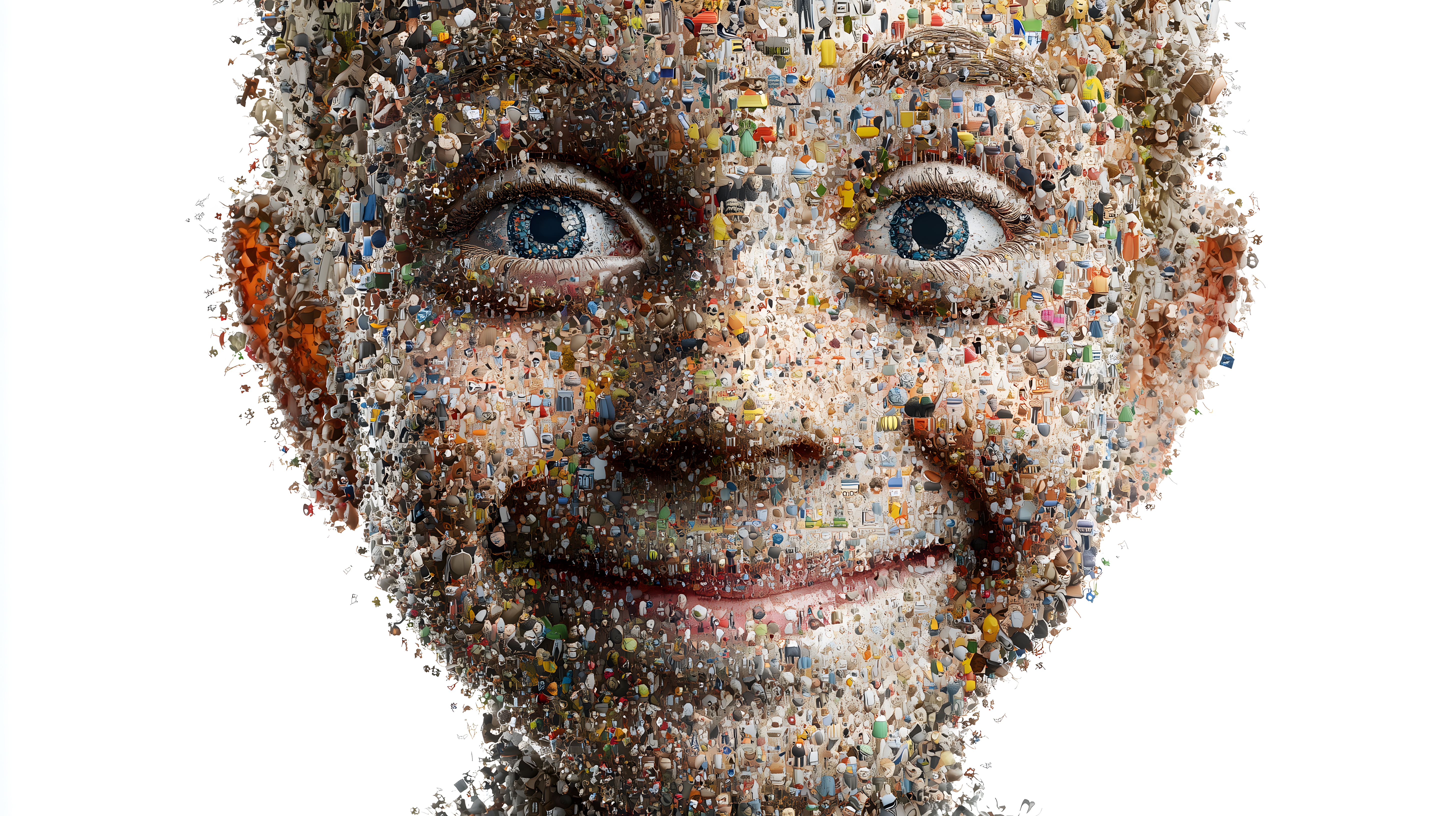 Dieses faszinierende Bild zeigt ein fantasievolles Kinderprofil, das aus einer bunten Collage von Sammlerstücken und Illustrationen zusammengesetzt ist. Die detailreichen Augen blicken direkt in die Kamera und verleihen dem Motiv eine sehr ausdrucksstarke Präsenz. Die Vielfalt der verwendeten Elemente, von Spielsachen über Textilien bis hin zu Alltagsgegenständen, schafft eine einzigartige, kreative Atmosphäre. Dieses Stockfoto in hoher Auflösung eignet sich hervorragend für den Einsatz in Blogs, Newslettern, Social-Media-Kanälen oder Werbekampagnen. Es steht unter der Creative-Commons-Lizenz zur freien Nutzung zur Verfügung.