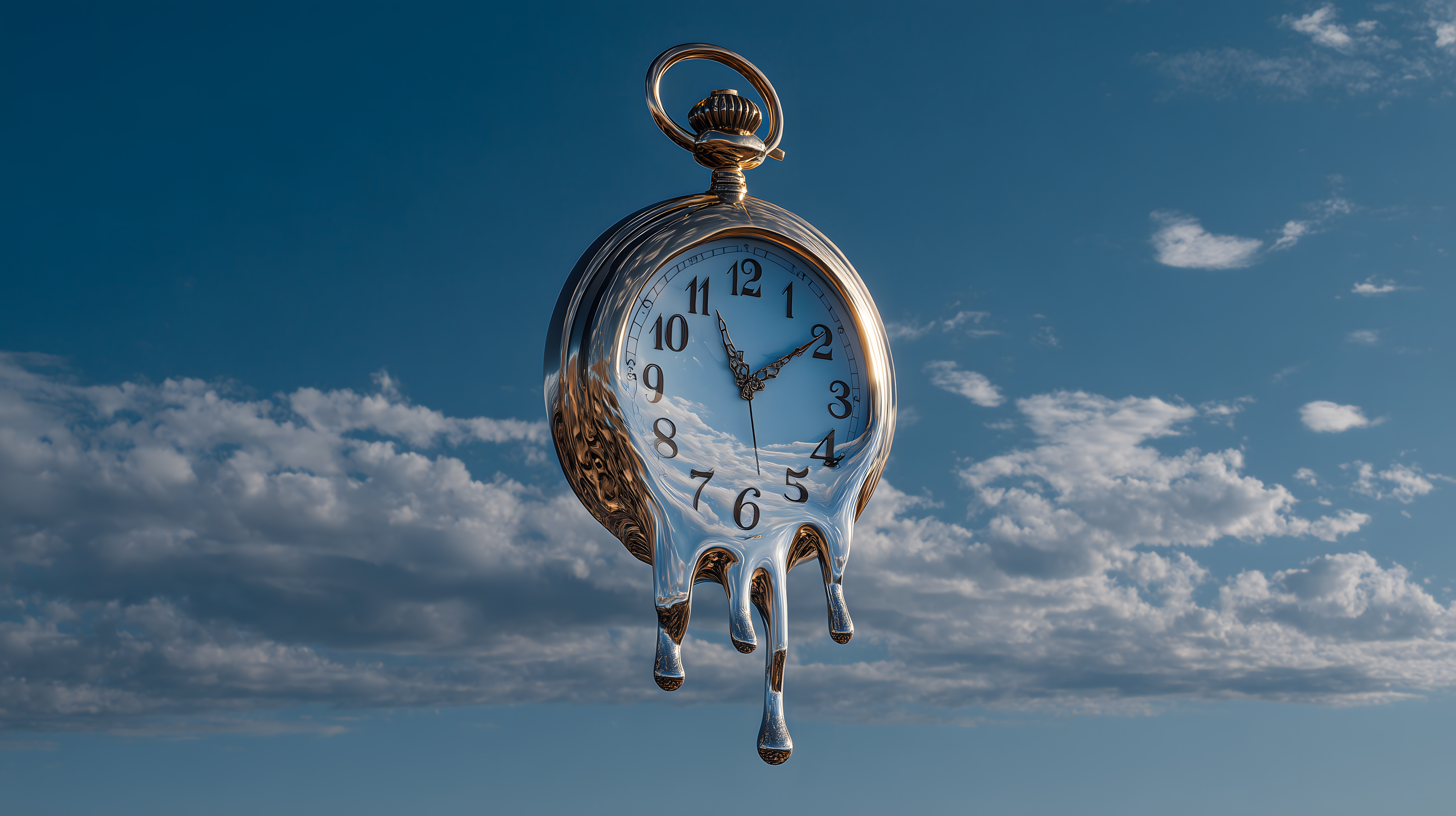 Das Bild zeigt eine außergewöhnliche, surreale Szene: Eine Taschenuhr, die am Himmel schwebt und zu schmelzen scheint. Der blaue Himmel mit Wolken bildet den Hintergrund, wodurch die Uhr noch surrealer und atmosphärischer wirkt. Die Perspektive ist ungewöhnlich, was den Eindruck des Übernatürlichen verstärkt. Dieses Stockfoto eignet sich hervorragend für kreative Projekte wie Blogs, Social Media-Posts oder Werbematerialien, in denen ein unkonventioneller, fantasievoller Ansatz gefragt ist. Das Bild ist in hoher Auflösung verfügbar und unter einer Creative-Commons-Lizenz frei nutzbar.