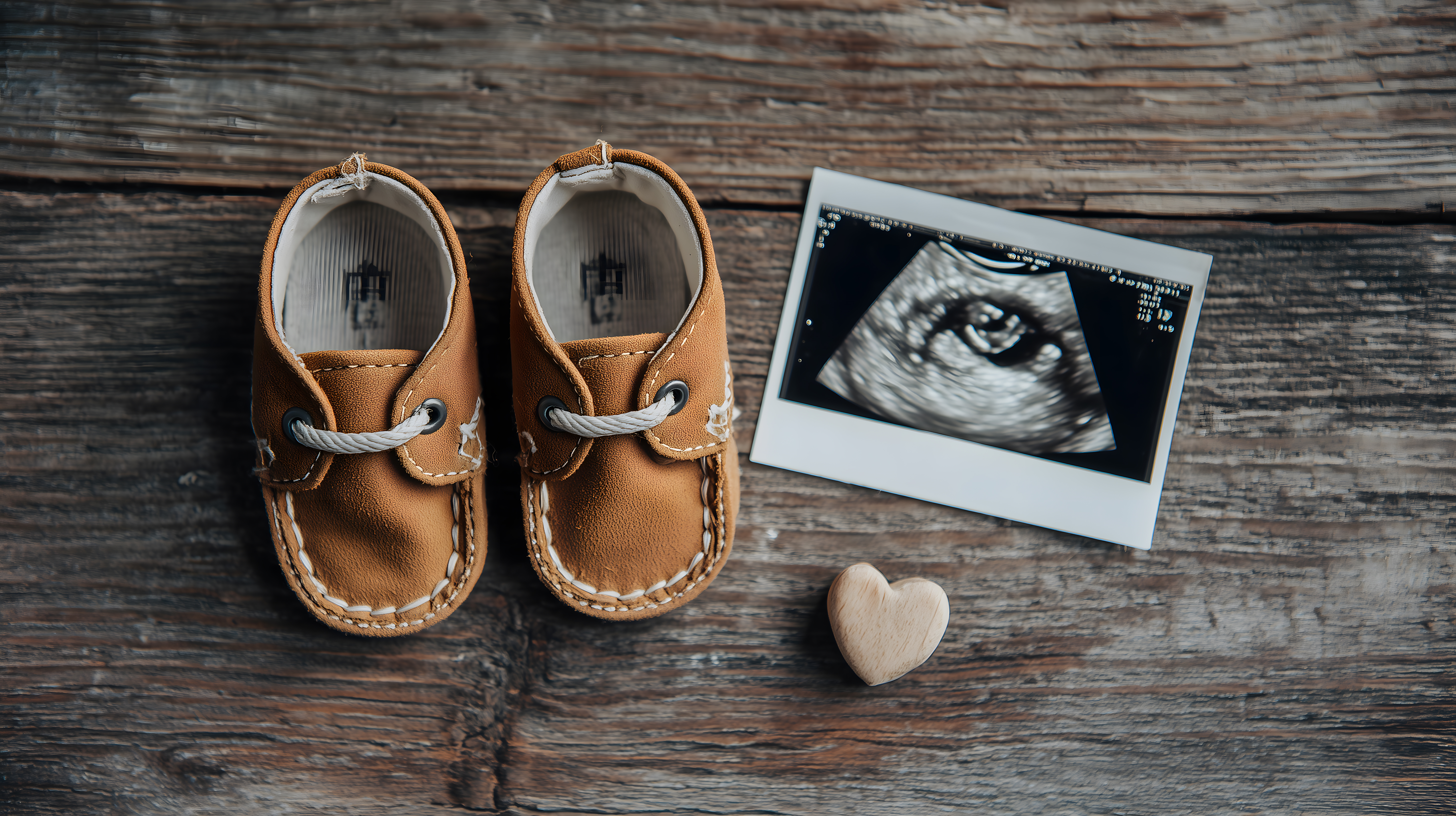 Das Bild zeigt ein stimmungsvolles Stillleben mit Babyschuhen, einem Ultraschallbild und einem Holzherz auf einem rustikalen Holztisch. Die erdigen, warmen Farben und die Nahaufnahme vermitteln eine intime, emotionale Atmosphäre, die den Beginn einer neuen Familie und die Freude über eine Schwangerschaft symbolisiert. Das Foto eignet sich hervorragend für den Einsatz in Blogbeiträgen, Newslettern oder Social-Media-Kanälen zum Thema Schwangerschaft, Geburt oder Familie. Als kostenloses Stockfoto in hoher Auflösung und unter einer Creative-Commons-Lizenz verfügbar, kann es vielfältig genutzt werden.
